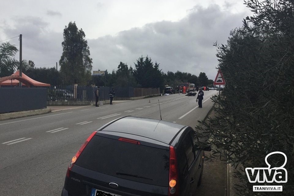 Un grave incidente si è verificato questa mattina sulla provinciale che collega Trani e Corato, con una persona deceduta e altre due ferite. Coinvolte una moto di grossa cilindrata ed un'Audi nera. Il motociclista, un uomo di 54 anni di Barletta, ha perso la vita dopo l'impatto con l'auto, a bordo della quale c'era una coppia finita all'Ospedale "Bonomo" di Andria. La ragazza di 33 anni di origine siciliana è stata trasportata in codice rosso dall'equipe "Mike 12" della postazione del 118 di Trani, arrivata sul posto insieme ad un'altra ambulanza proveniente da Bisceglie. Il marito, invece, è arrivato in ospedale con ferite lievi.