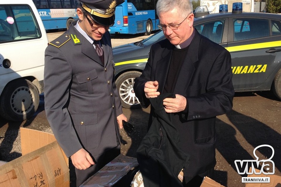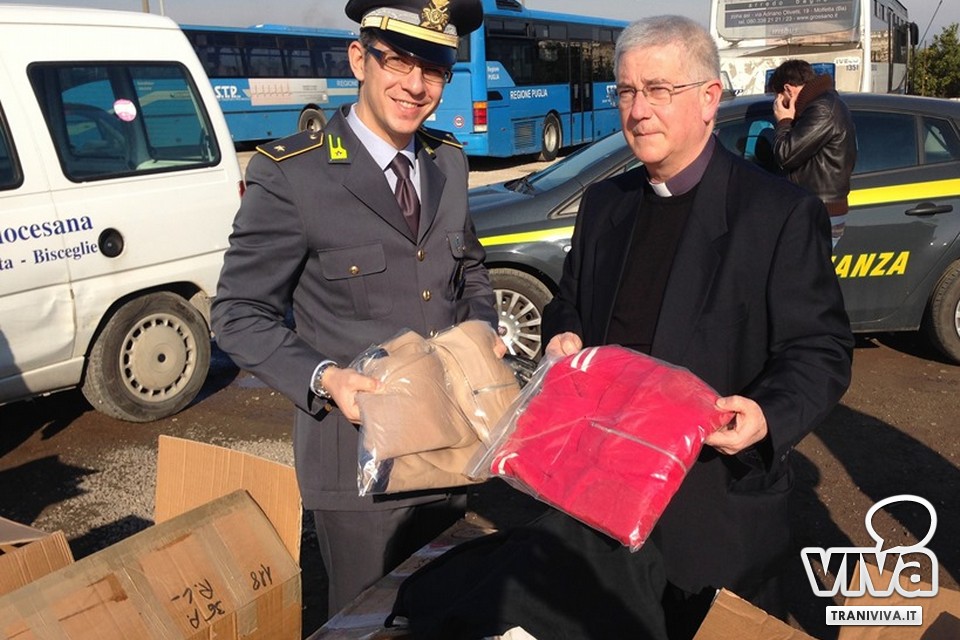 Gli abiti erano stati sequestrati dalle Fiamme Gialle campane e pugliesi una decina di anni fa a Giovinazzo, nell'ambito di un'operazione di servizio congiunta che portò allo smantellamento di un centro di commercializzazione di articoli di abbigliamento recanti false etichettature "made in Italy". Considerato che parte di tali capi non erano stati ancora etichettati, mentre, per altri è stato possibile asportarne la falsa etichettatura, l'Autorità Giudiziaria ha concesso l'autorizzazione a devolvere in beneficenza l'intero carico.