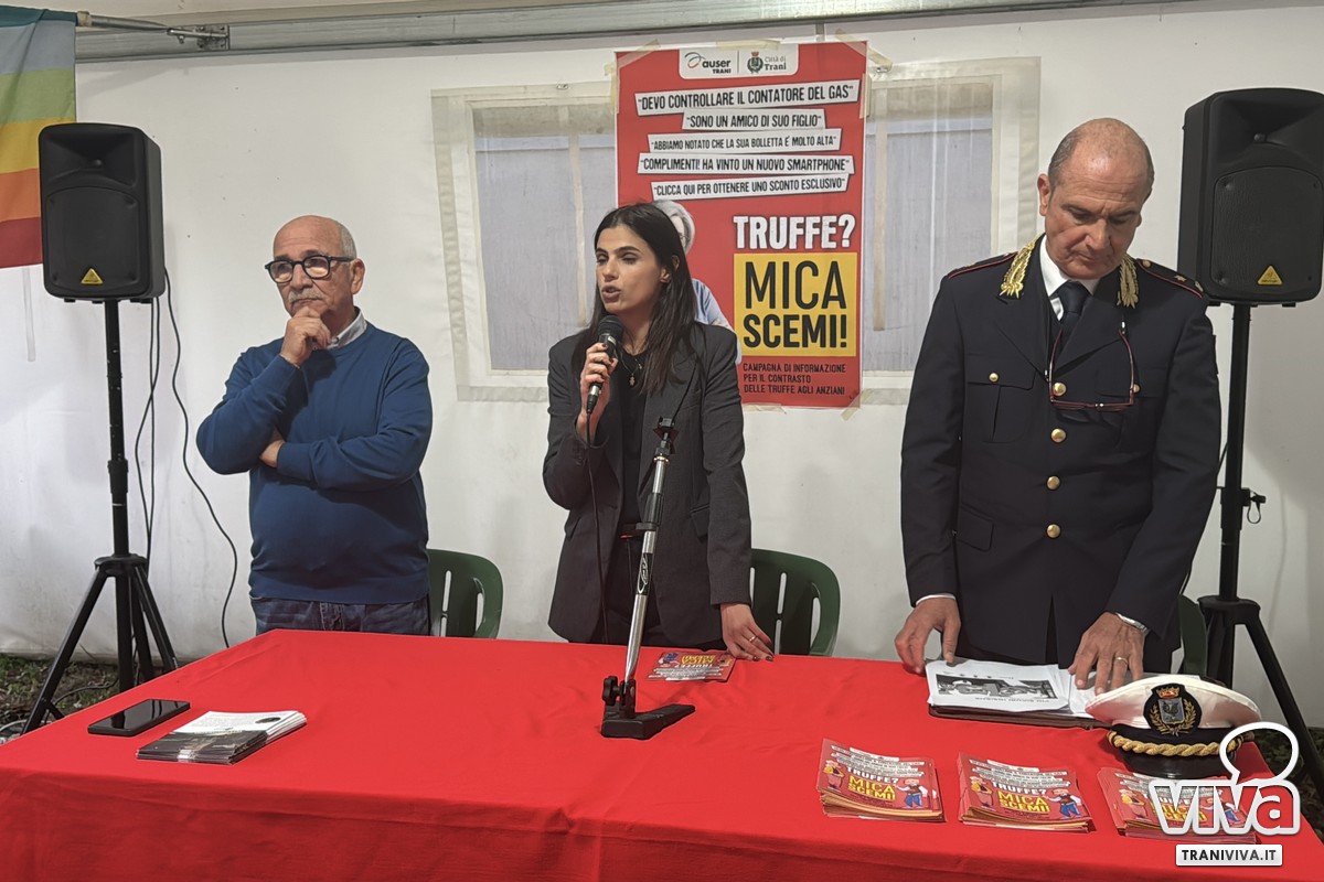 Il Comune di Trani e l'associazione Auser-Trani, unendo le forze, hanno dato il via ufficiale al progetto "MICA SCEMI" ("Occhio alle Truffe"), lo hanno fatto lo scorso 05 novembre. L'iniziativa, finanziata a valere sul "Fondo unico Giustizia" del Ministero dell'Interno - Dipartimento pubblica sicurezza, si pone un obiettivo cruciale: prevenire e contrastare le truffe che colpiscono la fascia più vulnerabile della popolazione, gli anziani. Il progetto, come evidenziato nella sua presentazione a Villa Guastamacchia, non è una semplice serie di incontri, ma una vera e propria campagna di informazione e sensibilizzazione che vedrà il coinvolgimento di Forze dell'Ordine, esperti e la comunità stessa per tutto il mese di novembre.