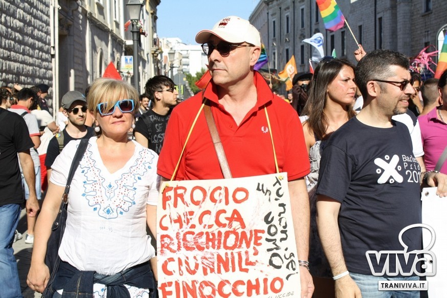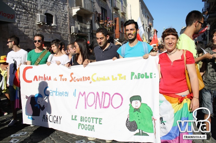 Il Sindaco di Barletta Cascella, accogliendo il corteo del Barletta Pride, promette l'approvazione dello ius soli e del registro delle coppie di fatto da parte del prossimo assessorato alle Pari Opportunità. Le istituzioni hanno un alto valore pedagogico nei confronti della cittadinanza; tuttavia, durante la parata, la gente ha mostrato grande spirito avanguardista rispetto alla classe dirigente. Si deve demonizzare la santità del nulla, si deve santificare la perversione del tutto integrante. «Felice chi è diverso, essendo egli diverso. Guai a chi è diverso, essendo egli comune»