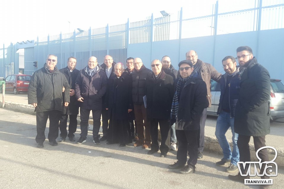 Il vescovo è stato accompagnato da don Gianni Massaro, don Riccardo Taccardi, don Mimmo Sandivasci, don Geremia Acri, don Giampaolo Roma, don Giuseppe Ruotino e don Ettore Lestingi, oltre che dai volontari impegnati da anni in questo servizio presso il carcere, come don Vincenzo Giannelli, don Giuseppe Zingaro e don Riccardo Agresti. Monsignor Mansi ha portato un messaggio di amore e speranza ai tanti detenuti del carcere maschile di Trani.