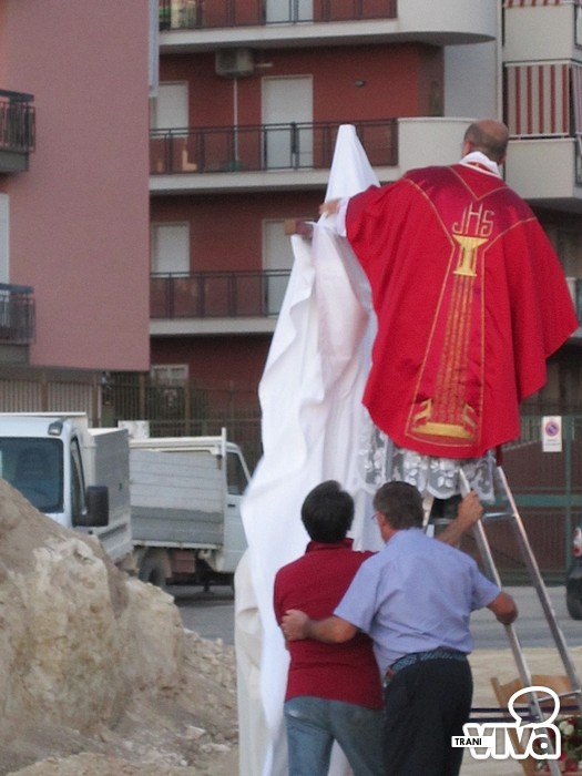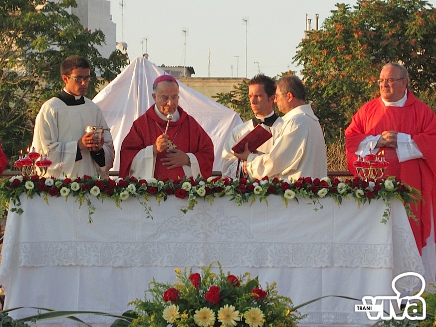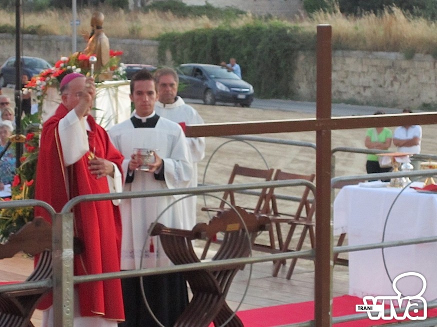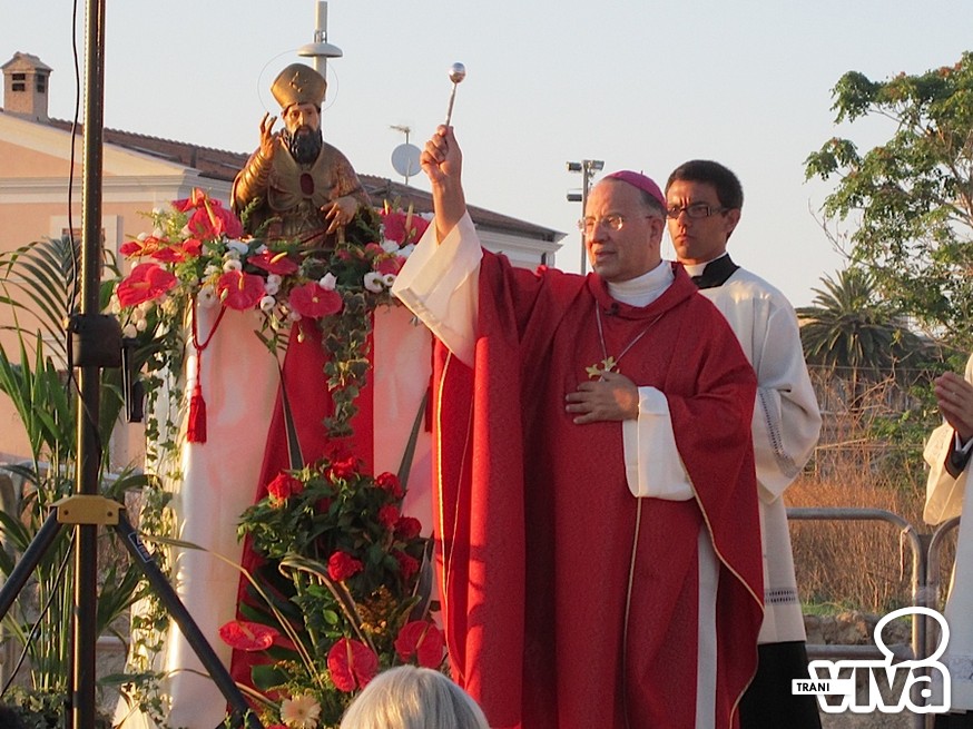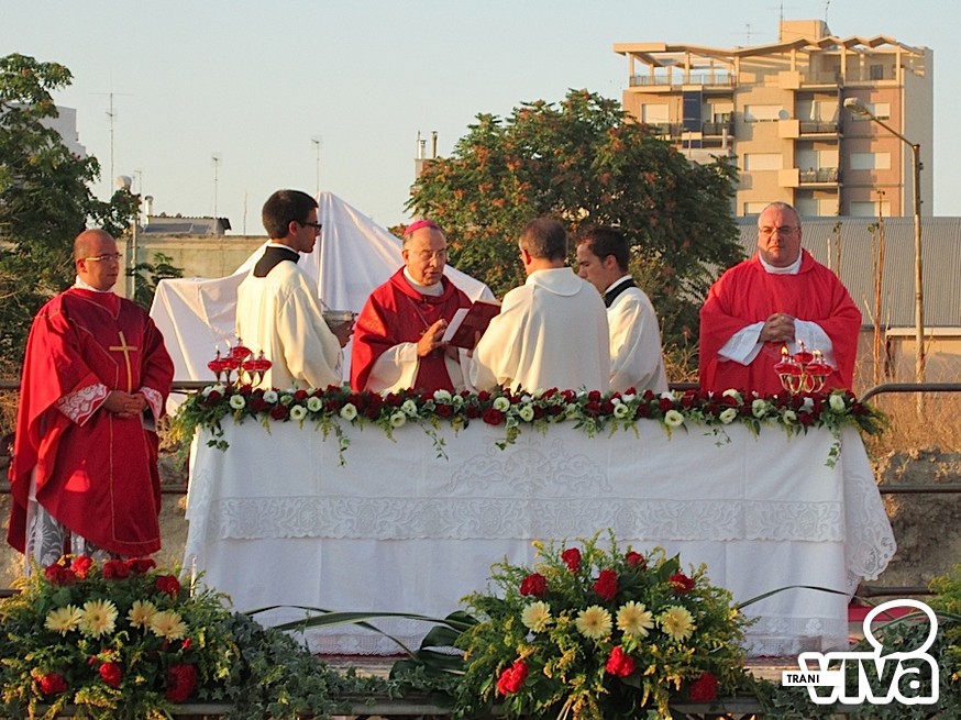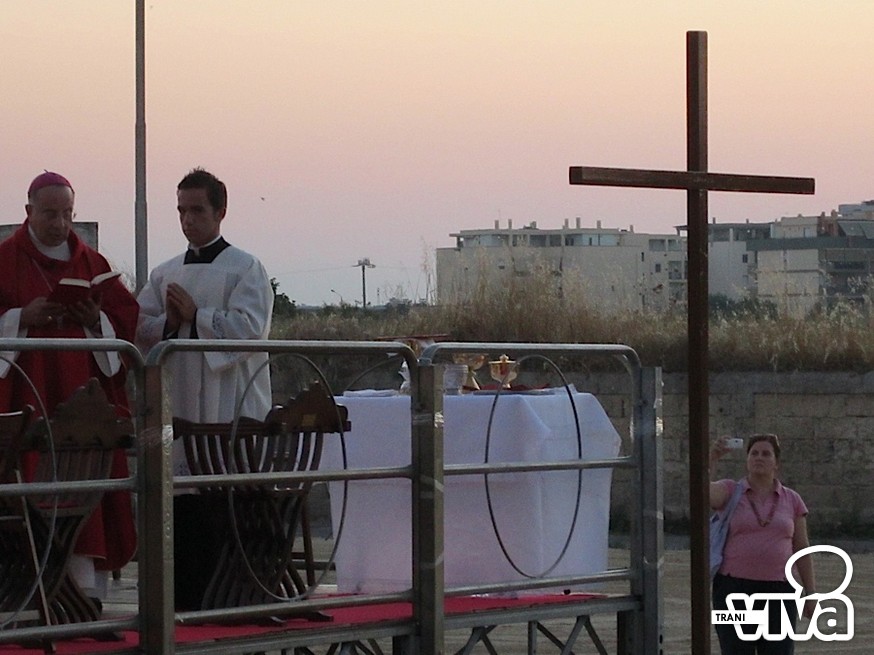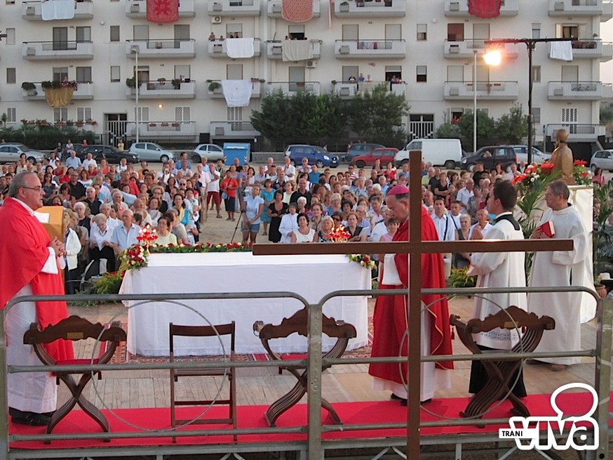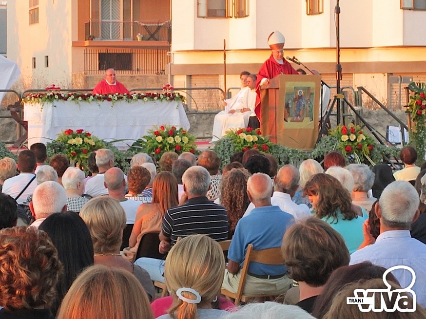 L'arcivescovo Giovan Battista Pichierri, nel corso di una solenne celebrazione eucaristica all'aperto, ha benedetto la croce, collocata nel terreno dove sorgerà il centro parrocchiale. «Per la città di Trani – ha detto l'Arcivescovo nell'omelia - è un giorno speciale. Non sappiamo quando sarà edificata la chiesa ma la presenza nel suolo della croce indicherà a tutti i fedeli che questo è il luogo della speranza, il luogo dove amare Dio. Testimoniamo fattivamente la presenza di una nuova casa comune della preghiera, aperta a tutti». Pichierri ha anche invitato i fedeli ad avvicinarsi maggiormente al culto di San Magno: «Stiamo scoprendo sempre più la sua preziosa santità, cogliendo la grandezza del martirio. Dobbiamo tendere verso il suo esempio, sacrificandoci ogni giorno per Dio e per il prossimo, rifuggendo ogni egoismo».