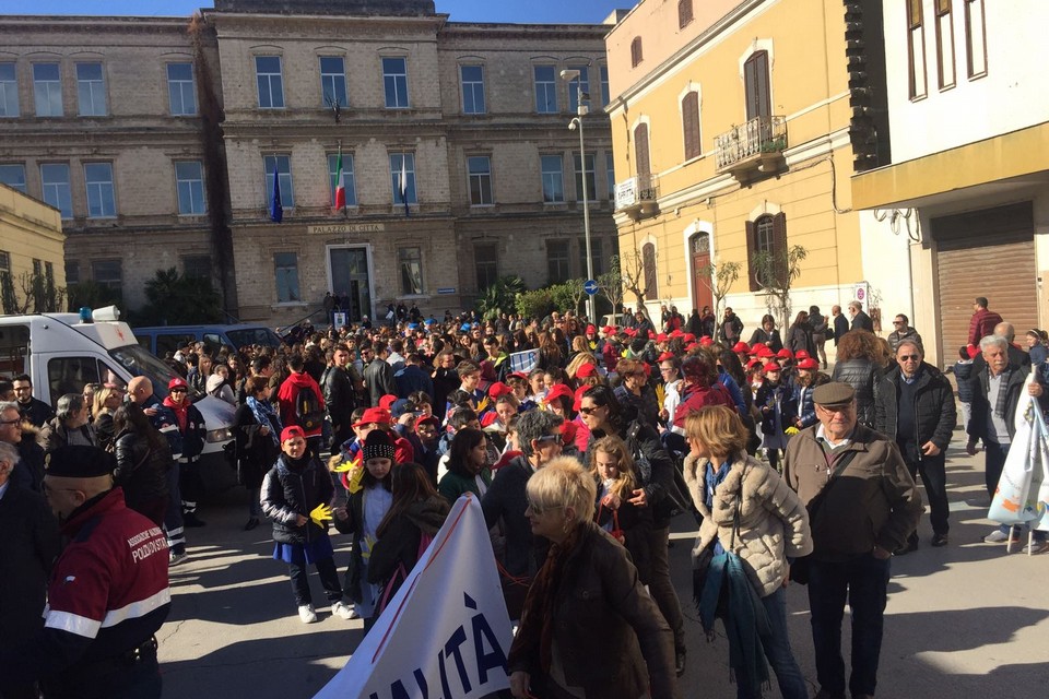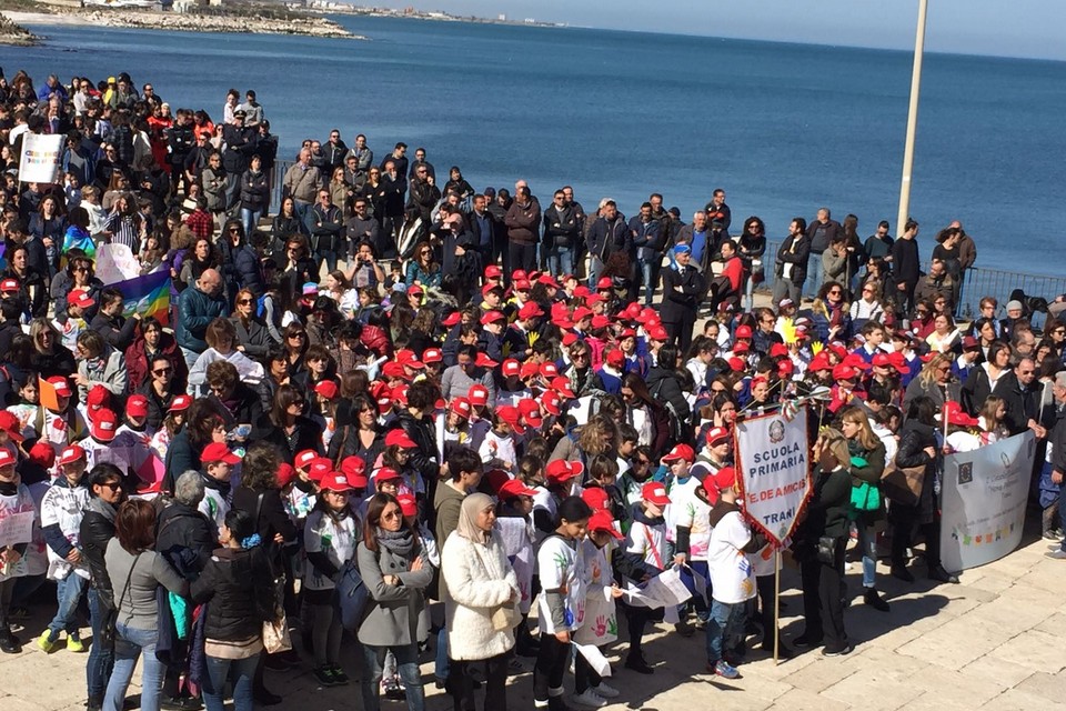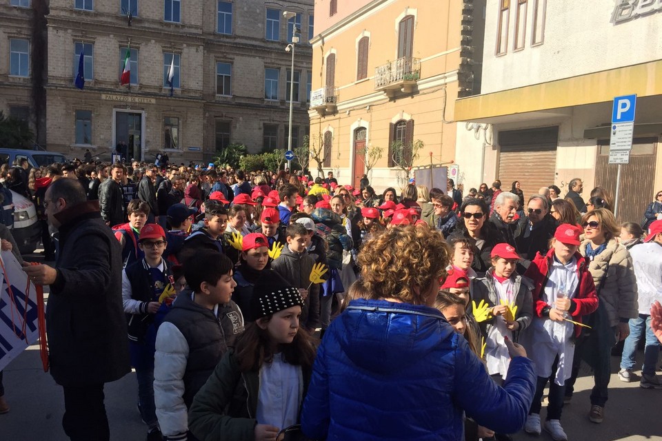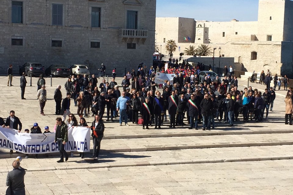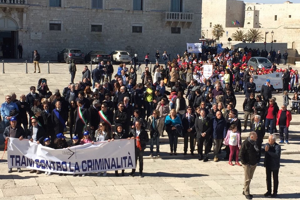 E' partita da Palazzo di Città la Marcia per la Legalità che si sta snodando per le principali vie della città. 92 le associazioni che hanno preso parte al corteo. In prima fila il sindaco Amedeo Bottaro accompagnato da Fabrizio Ferrante e dai colleghi di Andria Nicola Giorgino (in veste di presidente della provincia Bat) e Pasquale Cascella. Fa le veci del vescovo Picchierri, assente per altri impegni, don Mimmo De Toma, vicario episcopale per Trani. Presenti numerose scolaresche di ogni ordine e grado nonché tantissimi cittadini comuni.