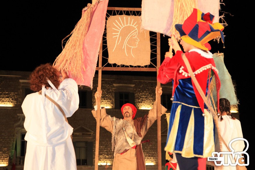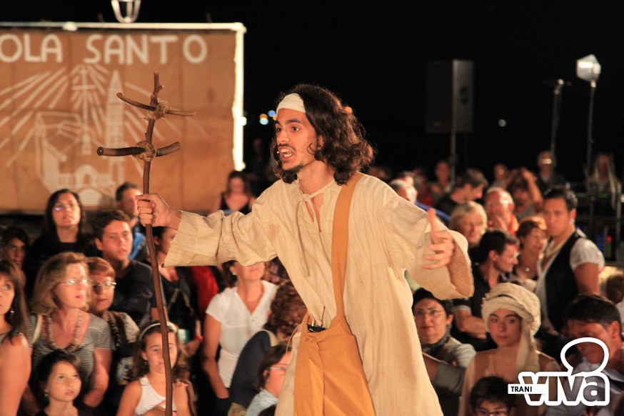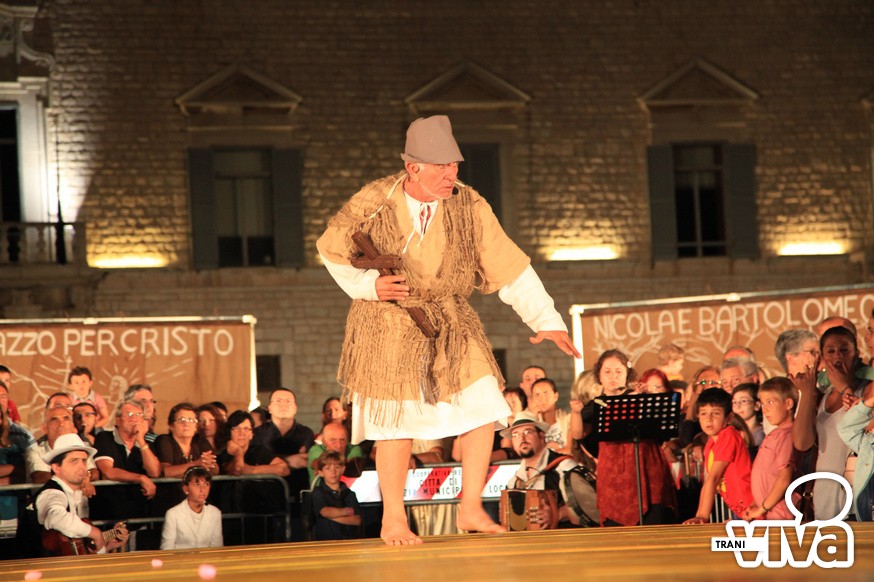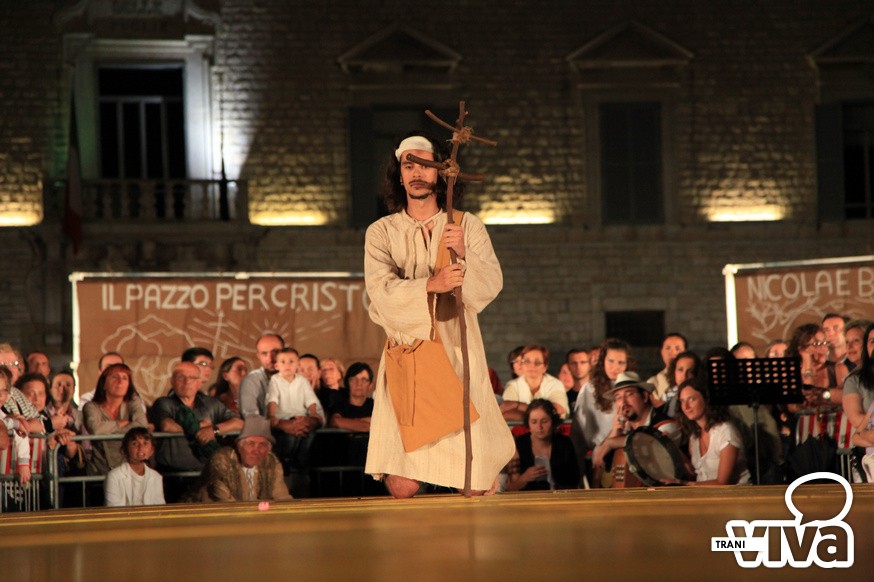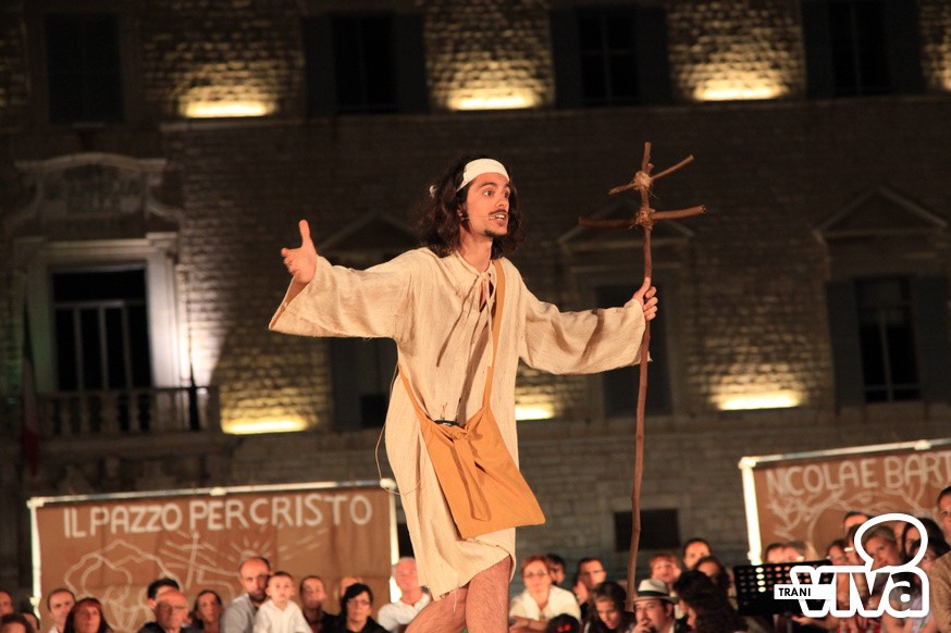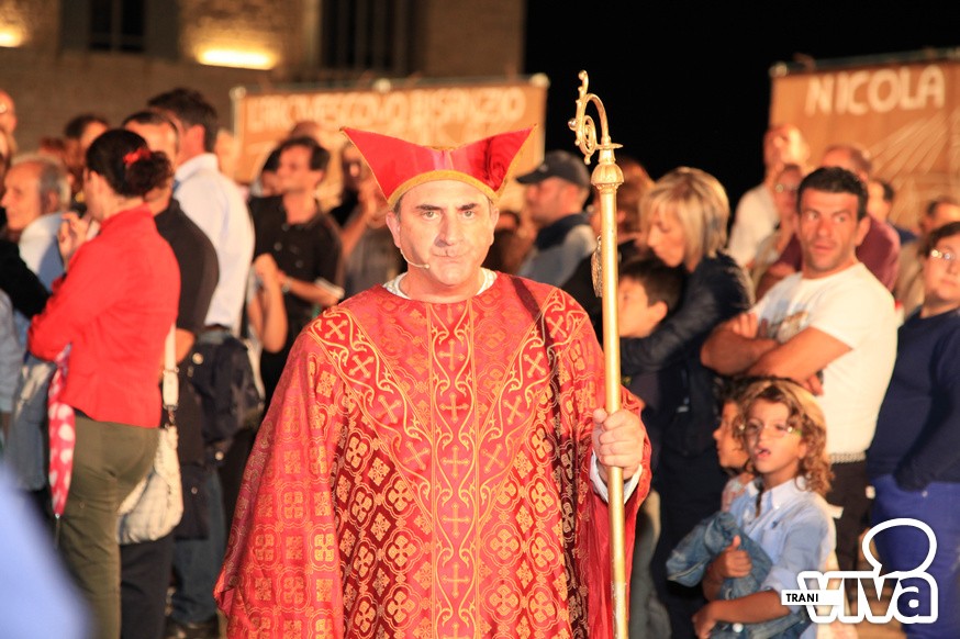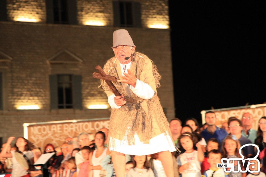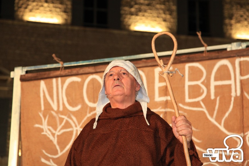Potere del Santo, in grado di fermare anche la pioggia per permettere a tutti di prendere coscienza delle sue virtù. Si è svolta senza intoppi metereologici, in piazza Duomo, la sacra rappresentazione medievale sulla vita di San Nicola Pellegrino. L'iniziativa, collocata all'interno delle celebrazioni in onore del Santo, è stata ideata e realizzata dal regista Paolo Todisco che vanta esperienze nazionali nel teatro cristiano, con rassegne in tutta Italia e in Vaticano alla presenza del Papa. La sacra rappresentazione era articolata in sette palcoscenici. Durante lo spettacolo si è fatto riferimento all'unicità del carisma di San Nicola, annoverabile nella categoria dei pazzi per Cristo (ignoti in occidente).