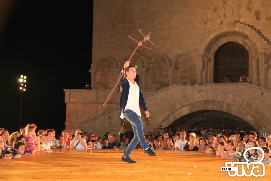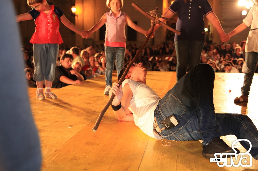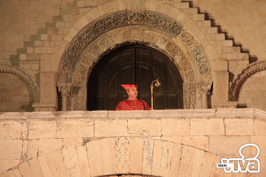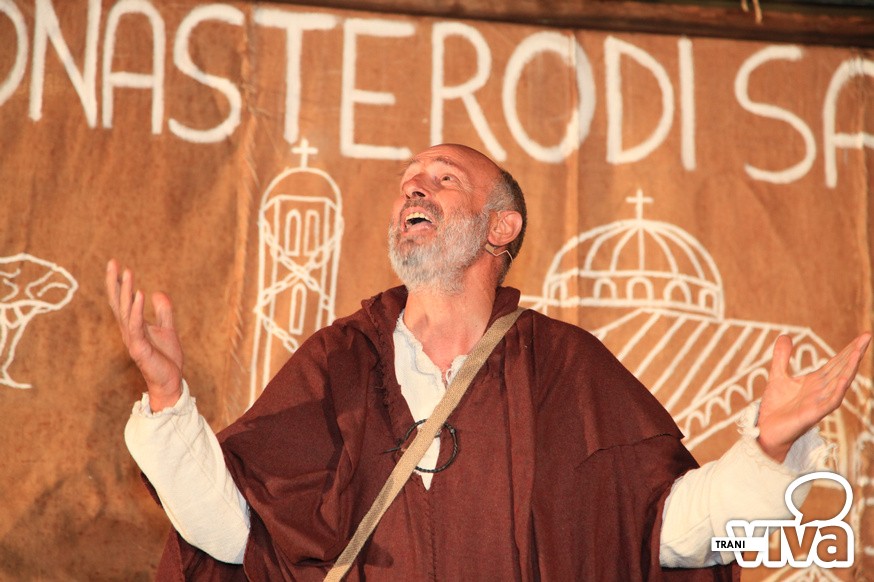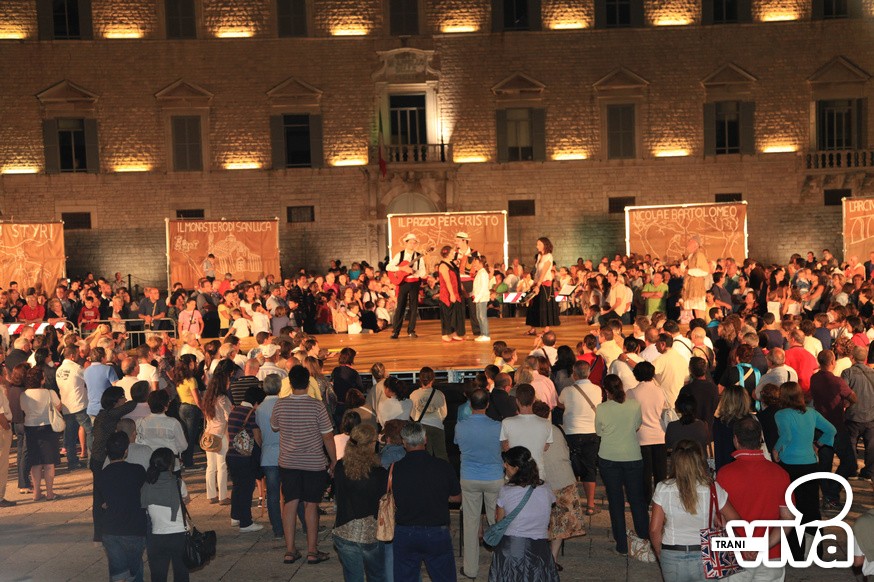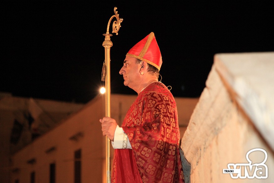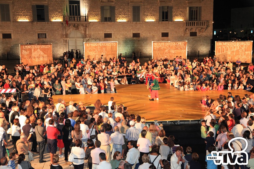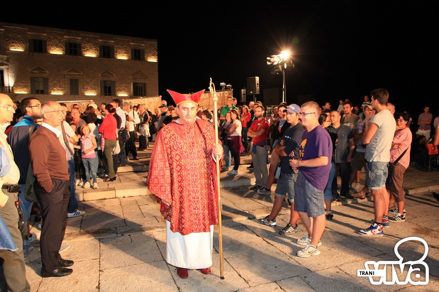 Potere del Santo, in grado di fermare anche la pioggia per permettere a tutti di prendere coscienza delle sue virtù. Si è svolta senza intoppi metereologici, in piazza Duomo, la sacra rappresentazione medievale sulla vita di San Nicola Pellegrino. L'iniziativa, collocata all'interno delle celebrazioni in onore del Santo, è stata ideata e realizzata dal regista Paolo Todisco che vanta esperienze nazionali nel teatro cristiano, con rassegne in tutta Italia e in Vaticano alla presenza del Papa. La sacra rappresentazione era articolata in sette palcoscenici. Durante lo spettacolo si è fatto riferimento all'unicità del carisma di San Nicola, annoverabile nella categoria dei pazzi per Cristo (ignoti in occidente).