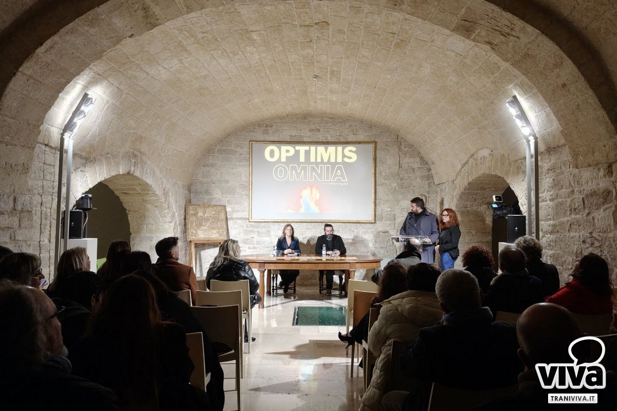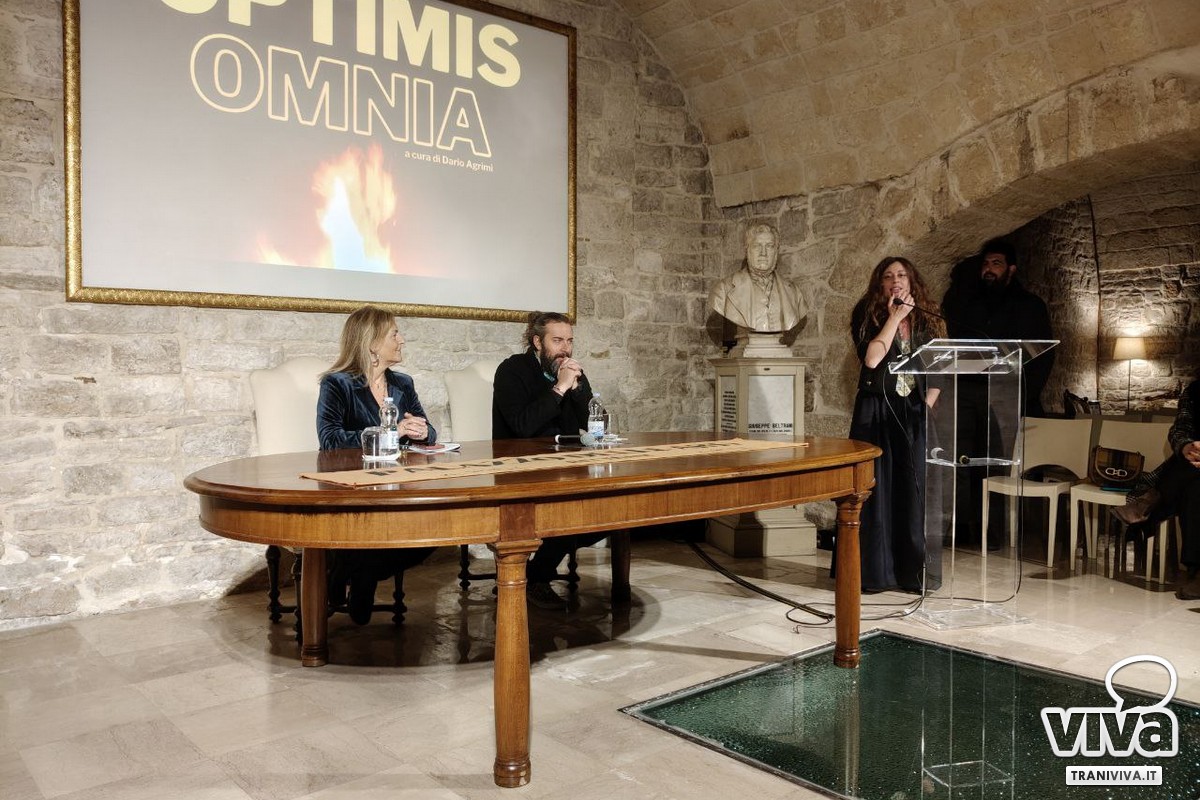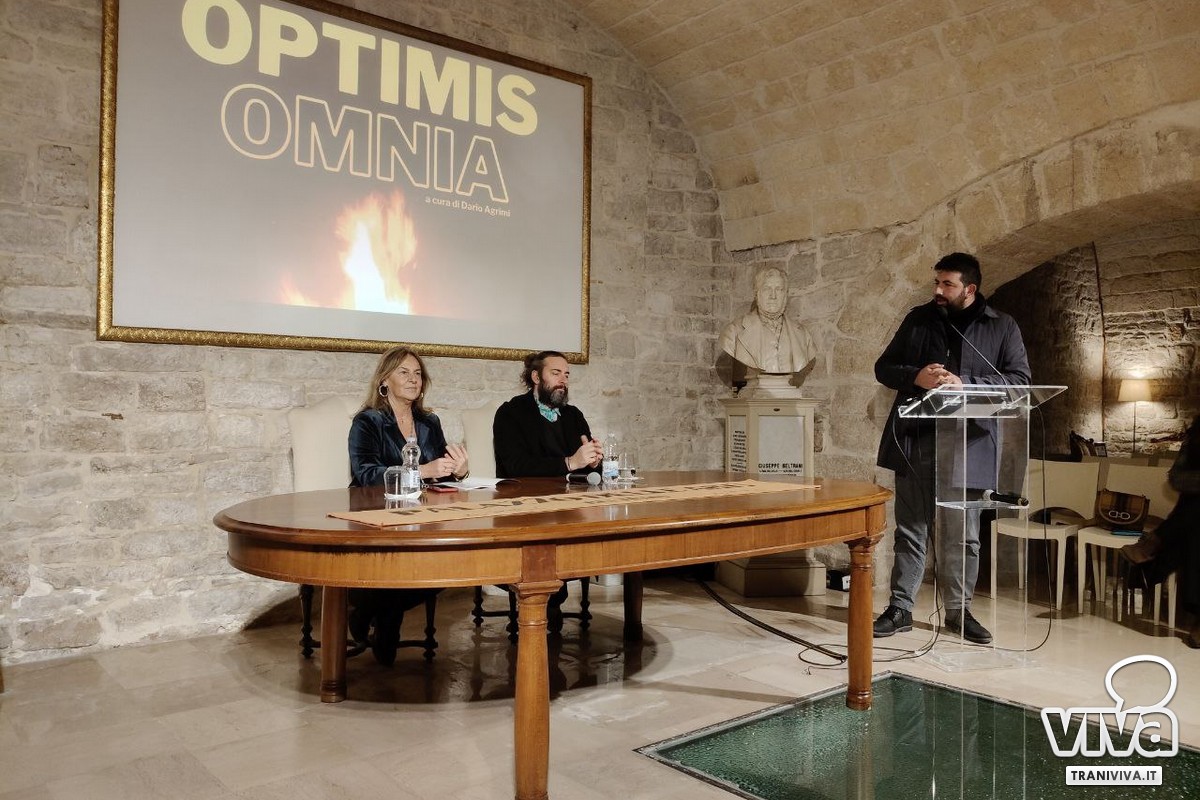 Nella serata di ieri è stata presentata al pubblico e alla stampa la mostra di arte contemporanea "Optimis Omnia" a cura di Dario Agrimi, artista poliedrico e talentuoso che lavora tra Torino e Trani con la sua arte. La conferenza stampa ha visto la partecipazione di un vasto pubblico, della stampa e delle istituzioni nelle persone di Lucia De Mari, assessora alle culture della Città di Trani, Grazia di Bari, consigliera regionale e Aldo Patruno, dirigente uscente del Dipartimento Turismo, Economia della Cultura e Valorizzazione del territorio della Regione Puglia.