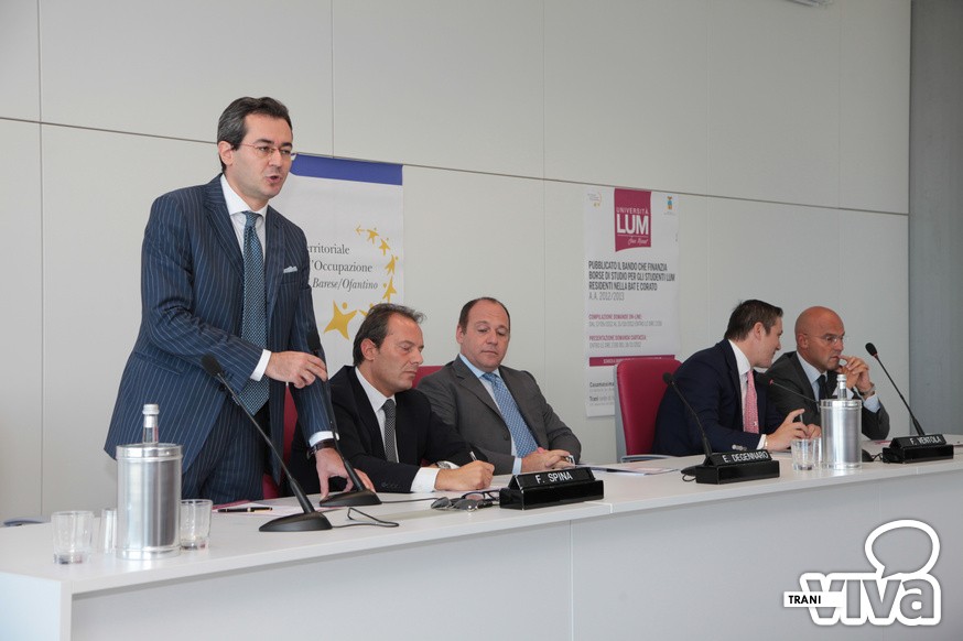 Il rettore della Lum Jean Monnet, Emanuele Degennaro, ha delineato il futuro della sede di Trani. «La Lum è l'università che l'Europa vuole, vicina al mondo delle professioni, degli imprenditori e delle pubbliche amministrazioni. Trani rientra in questo progetto di alta formazione. La sede è stata completata ed è pronta dal 3 settembre. Accoglierà seminari, esercitazioni, master ed un centro ricerche interdisciplinare sui sistemi territoriali innovativi e comunità intelligente. Il centro sarà presieduto da Aldo Romano, padre fondatore di Tecnopolis e direttore della e-business management school della scuola superiore Isufi dell'università di Lecce».