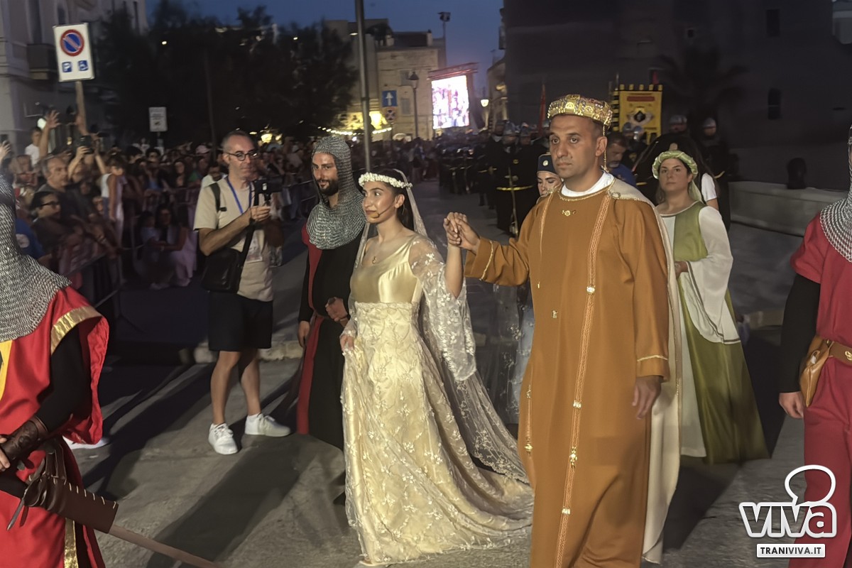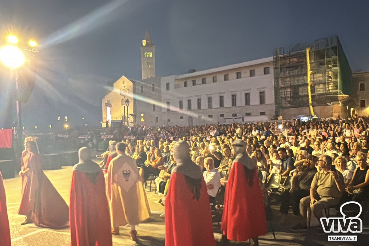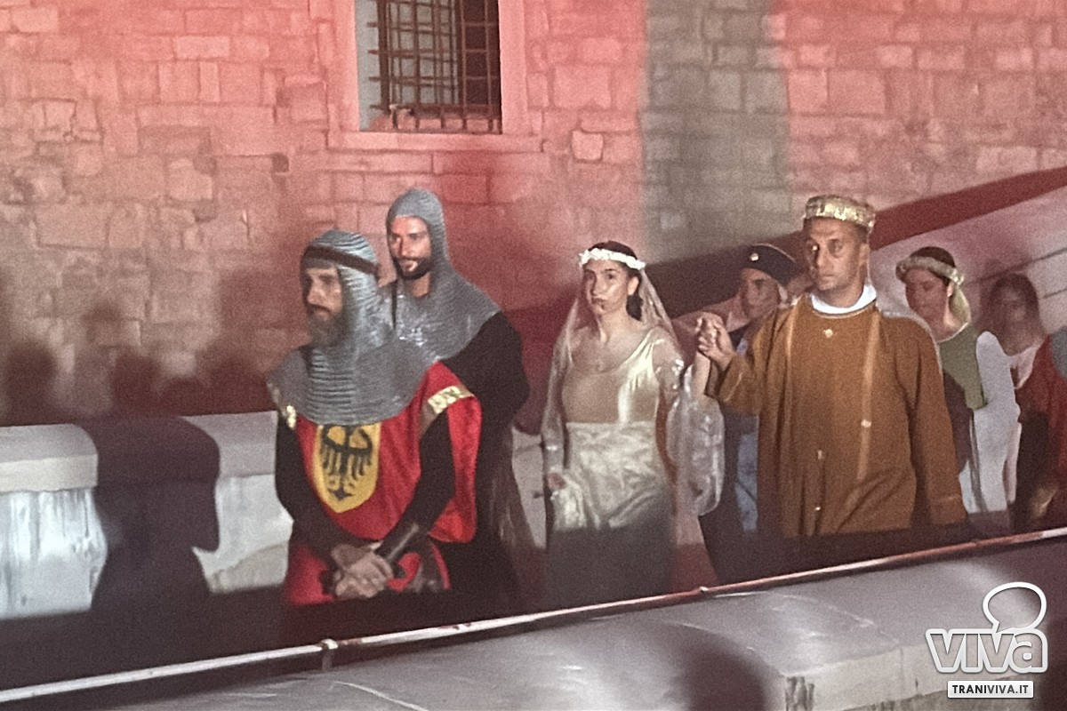 L'Associazione Culturale Trani Tradizioni, dopo il grande successo dell'edizione 2024, porta casa una straordinaria edizione della "Settimana Medievale" che si è tenuta dall'8 al 10 agosto nel centro storico di Trani per concludersi presso il Castello Svevo. L'evento che si è dimostrato ancora più speciale non fosse altro per i 20 anni associativi di attività di Trani Tradizioni, guidata dal suo Presidente Giuseppe Forni ben coadiuvato da una squadra ben rodata con a capo Angela magnifico, ha mantenuto le premesse e le promesse di essere indimenticabile. Il successo ottenuto dalle tre giorni è innegabile, lo ha attestato sia il richiamo di migliaia di visitatori da tutta Italia e dall'Estero e sia la nutrita schiera degli sponsor commerciali, oltre che quella "non scontata" dell'Amministrazione Comunale, che continuano a credere in una manifestazione che ha raggiunto alti livelli, una situazione questa che responsabilizza ancor di più l'Associazione Trani Tradizioni che si impegna a portare in alto e dappertutto il nome della Città. "Le nozze di Re Manfredi" ed il conseguenziale "Incendio al Castello" sono stati gli attesissimi spettacoli del 10 agosto, che riviviamo con il fotoset della serata e nelle reazioni del pubblico post evento.