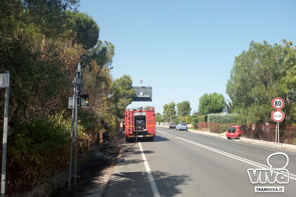 Incendio in una villa sulla Trani-Corato: in pericolo gli alberi