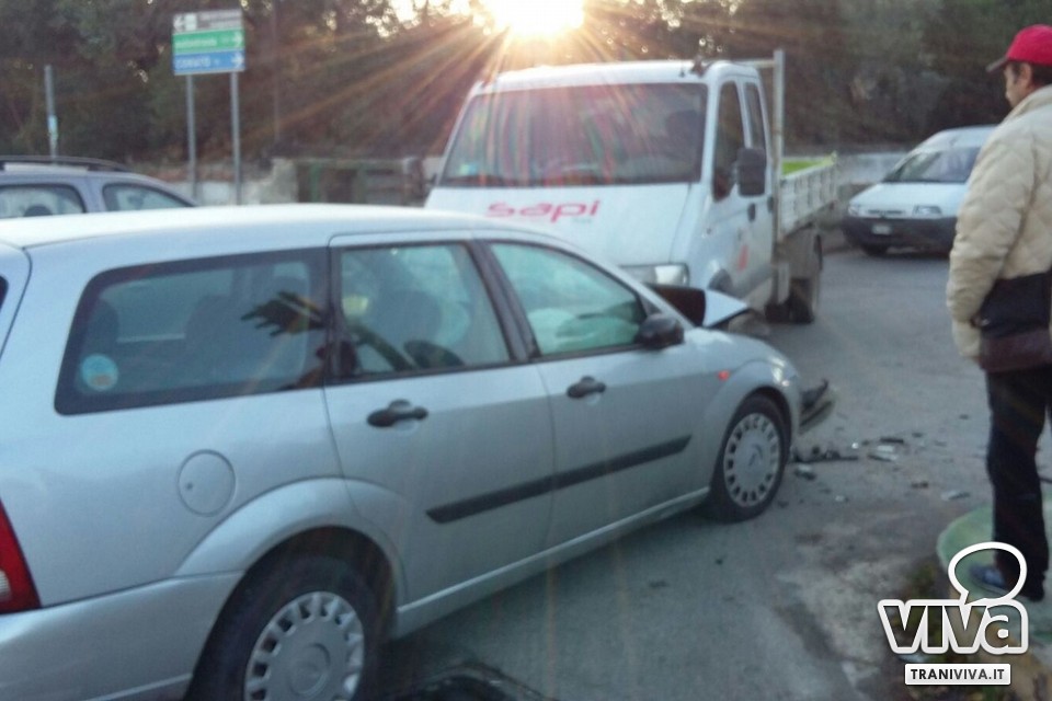 Incidente questa mattina all'inizio della provinciale Trani-Corato, proprio all'altezza del semaforo in zona Capirro. Nello scontro frontale tra un autocarro e una Focus station wagon ha avuto la peggio la vettura, con danni ingenti alla parte anteriore. Proprio il conducente dell'autovettura è stato infatti trasportato all'ospedale di Bisceglie con politrauma da strada dagli operatori del 118 di Trani, postazione "Mike 12", ma le sue condizioni non sono gravi; mentre sono rimasti illesi i due occupanti dell'autocarro.
