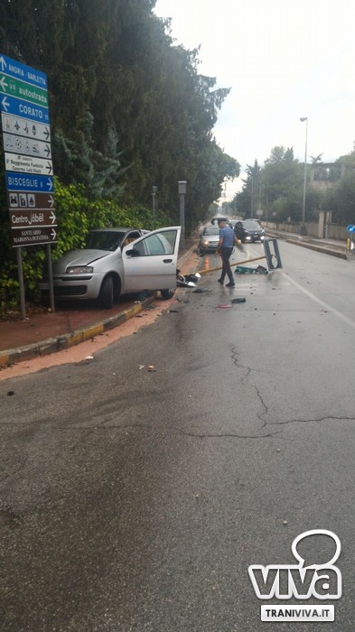 Incidente in via Corato: violento tamponamento tra due auto all'incrocio