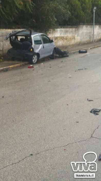 AGGIORNAMENTO - L'incidente sarebbe, in pratica, un violento tamponamento tra le due auto che provenivano entrambe da Corato. La Twingo - stando a quanto riferito dalle persone presenti in zona - era ferma al semaforo rosso, quando è sopraggiunta l'altra auto. Questa, probabilmente, non si è resa conto del fatto che l'altro mezzo fosse fermo al semaforo e l'ha travolto. La Twingo è stata spinta in avanti finendo sul marciapiede, girata su stessa. Ma anche la Punto è finita sul marciapiede. Coinvolti i due guidatori delle auto coinvolte, soccorse subito da altre persone che si trovavano in zona con l'auto. Gli operatori della postazione "Mike 29" del 118 di Bisceglie li hanno poi trasportati in ospedale a Trani per sottoporli ad esami. Sul posto i carabinieri della compagnia di Trani, intervenuti per accertare la dinamica dell'incidente.