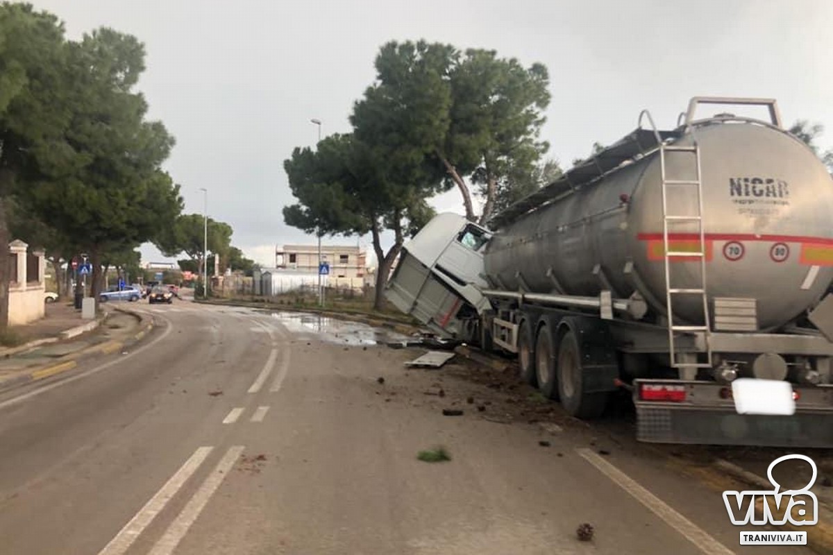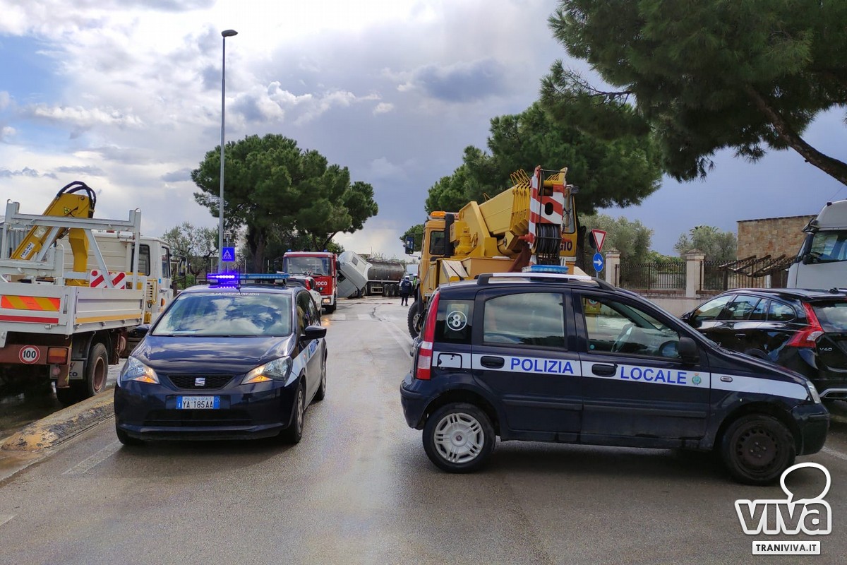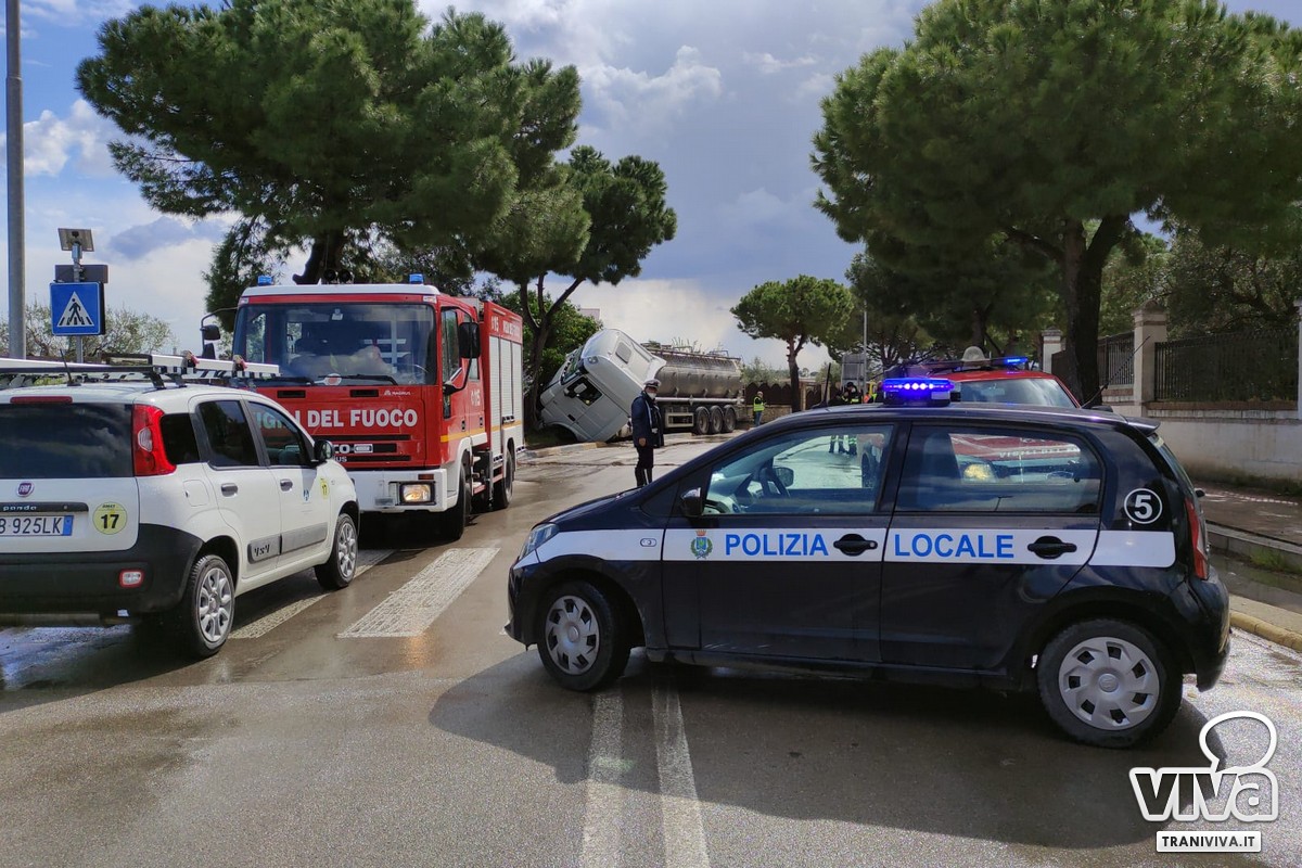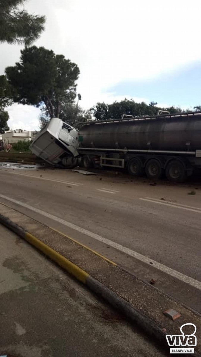 Un'autocisterna con rimorchio si è ribaltata questa mattina percorrendo una curva su via Martiri di Palermo, una strada trafficata e pericolosa in una zona residenziale, con due piste ciclabili lungo la carreggiata.