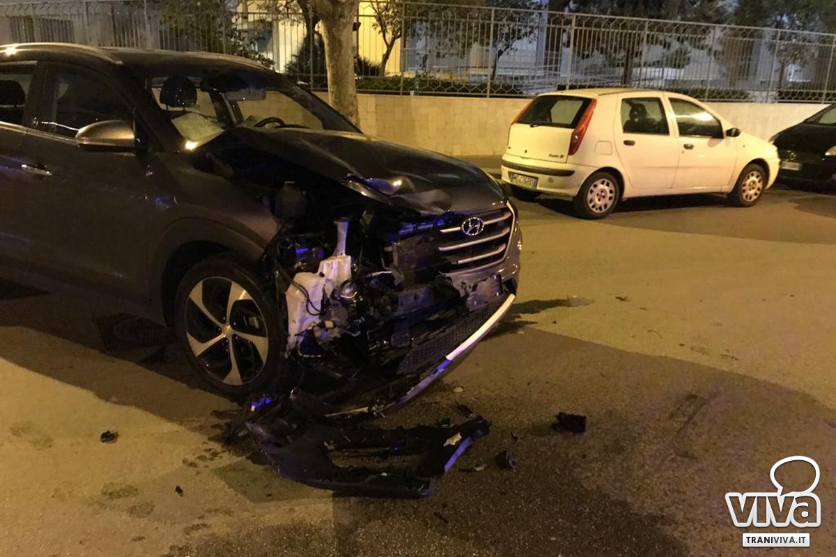 Sembrerebbe esser stata una mancata precedenza la causa dell'incidente avvenuto intorno alle ore 2.30 di questa notte. In via Papa Giovani, all'angolo con via Don Nicola Ragno, si sono scontrate una Hyundai nera ed un'auto della Metronotte. Le persone all'interno hanno riportato solo diverse ferite lievi e sono state trasportate presso l'ospedale di Bisceglie.