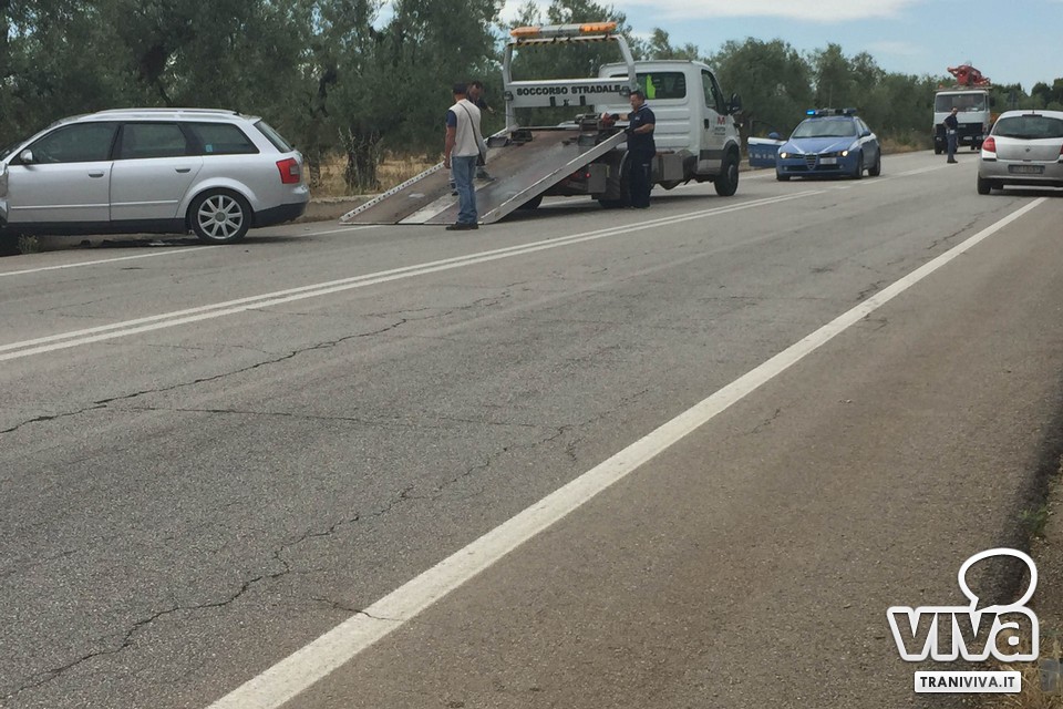 Incidente, questa mattina, sulla strada provinciale 238, circa un kilometro dopo il ponte dello svincolo autostradale. Una station wagon di colore grigia ha perso il controllo, mentre procedeva in direzione Trani, e ha tamponato una Citroen C3 grigio scuro che la precedeva. L'auto ha finito, poi, la propria corsa finendo fuori strada. L'autista, un uomo, unico passeggero del mezzo, è stato trasportato dal 118 di Trani, intervenuto sul posto con l'unità Mike12, presso l'ospedale di Andria, con codice giallo, per accertamenti, in seguito a diversi traumi riportati dall'impatto con l'airbag. Sul posto sono ancora presenti le volanti della Polizia di Stato e del Corpo Forestale, che hanno regolato il traffico: a lungo si è utilizzata una sola corsia per entrambi i sensi di marcia. A effettuare i rilievi del caso la Polizia Municipale tranese. Seguiranno aggiornamenti.