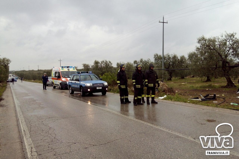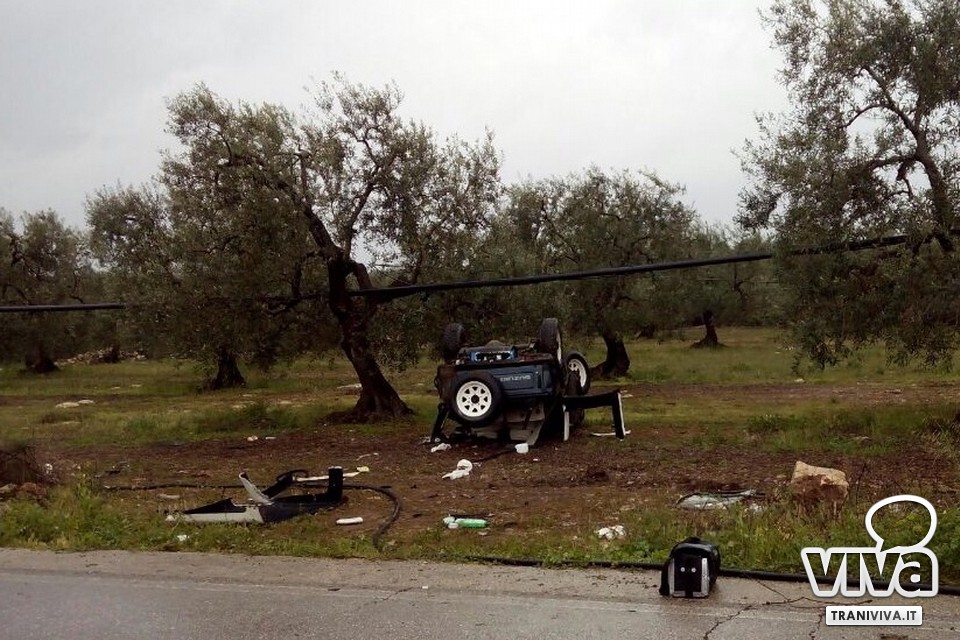 Inizia nel peggiore dei modi il giorno di Pasquetta. Un incidente sulla strada provinciale Bisceglie-Andria (in territorio di Trani) dove una Suzuki Vitara con quattro ragazzi a bordo ha perso controllo ribaltandosi nel terreno adiacente la provinciale.