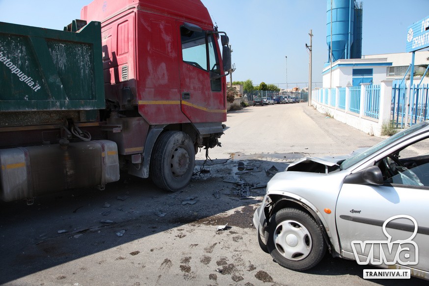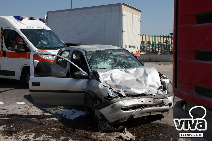 Due feriti con diverse fratture e traumi, è il bilancio di uno scontro tra un'autovettura, una Opel Corsa e un camion della Beton Puglia, che si è verificato questo pomeriggio sulla strada provinciale che collega Trani e Barletta in territorio di Trani. Intorno alle 15.00 il sinistro che, secondo una prima ricostruzione, sembrerebbe esser stato causato da una mancata precedenza da parte della Opel Corsa. Il camion, che proveniva da Barletta, si apprestava a svoltare a sinistra (verso il mare) in un deposito presente sulla provinciale, mentre l'auto non ha fatto in tempo a frenare finendo contro l'altro mezzo.