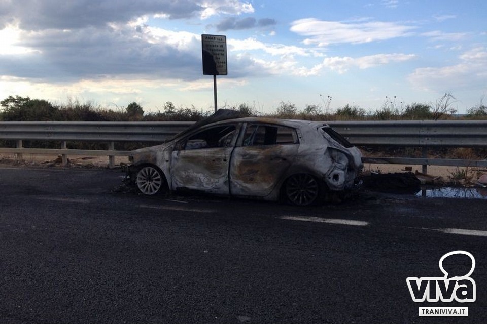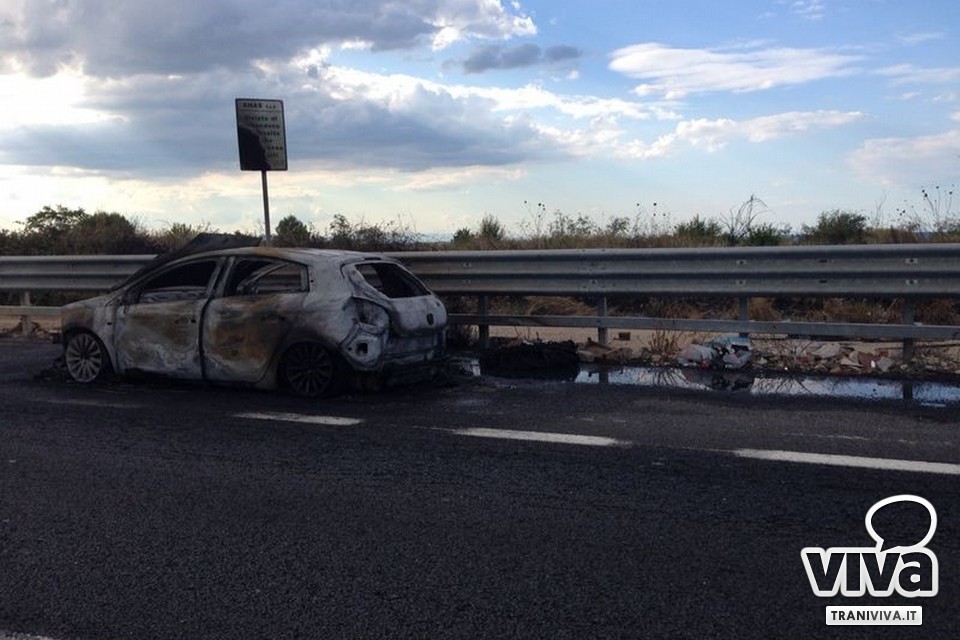 Auto in fiamme sulla statale, lunghe code fra Bisceglie e Trani