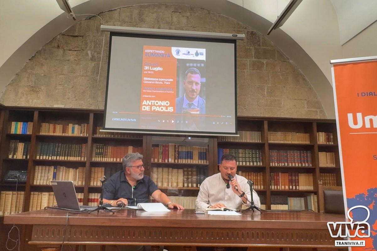 Il libro di Antonio De Paolis è stato presentato lo scorso 31 luglio nella Biblioteca Comunale "G. Bovio" a Trani in un incontro partecipato, inserito nell'ambito delle iniziative che precedono la XXIV edizione dei "I Dialoghi di Trani" che quest'anno ha scelto come parola chiave #Umanità.