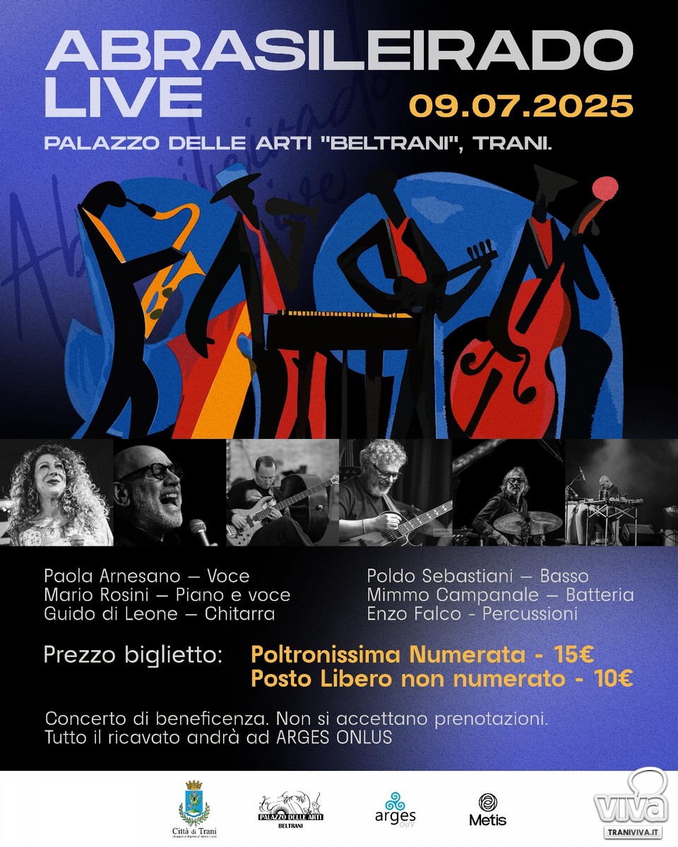 Una serata di musica, di melodia jazz, con quei caratteristici suoni brasiliani caldi e affascinante che vanno a mescolarsi con la tematica più seria della serata, trovare fondi per l' ARGES. Potremmo descrivere così la serata benefica di musica e spettacolo tenutasi ieri sera presso Palazzo Beltrani che ha visto tra i protagonisti – musicisti sul palco: Paola Arnesano alla voce; Mario Rosini, piano e voce; Guido Di Leone alla chitarra; Poldo Sebastiani, basso; Mimmo Campanale, batteria e Enzo Falco nella doppia veste di percussionista e responsabile di ARGES Odv.