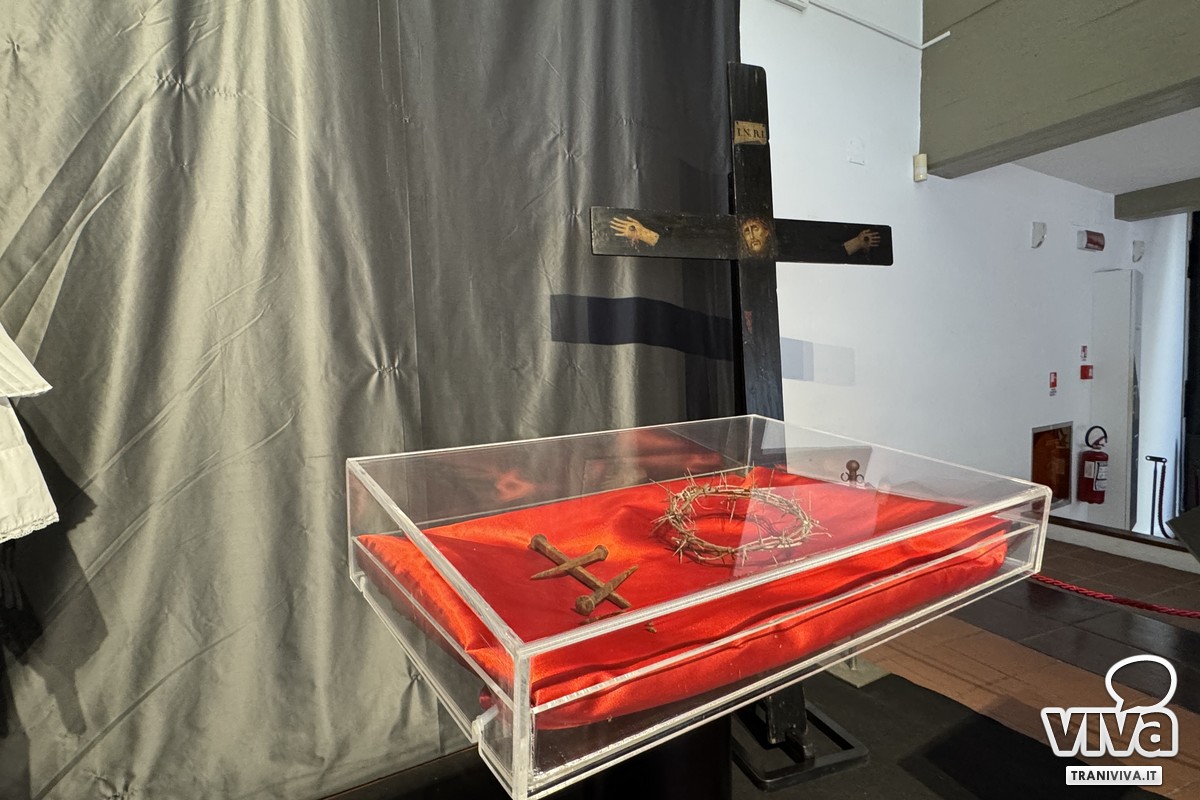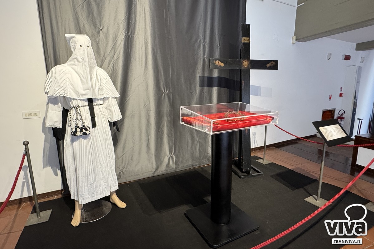 - La Spiritualità e l'Iconografia: Il percorso tocca corde intime attraverso l'esposizione di oggetti dal valore inestimabile: dagli abiti processionali dei confratelli alla corona di spine, fino a dei "chiodi medievali" di rara bellezza. Pezzo forte è la celebre Croce dei Misteri proveniente dal Santuario di Santa Maria di Colonna, simbolo identitario della fede tranese.