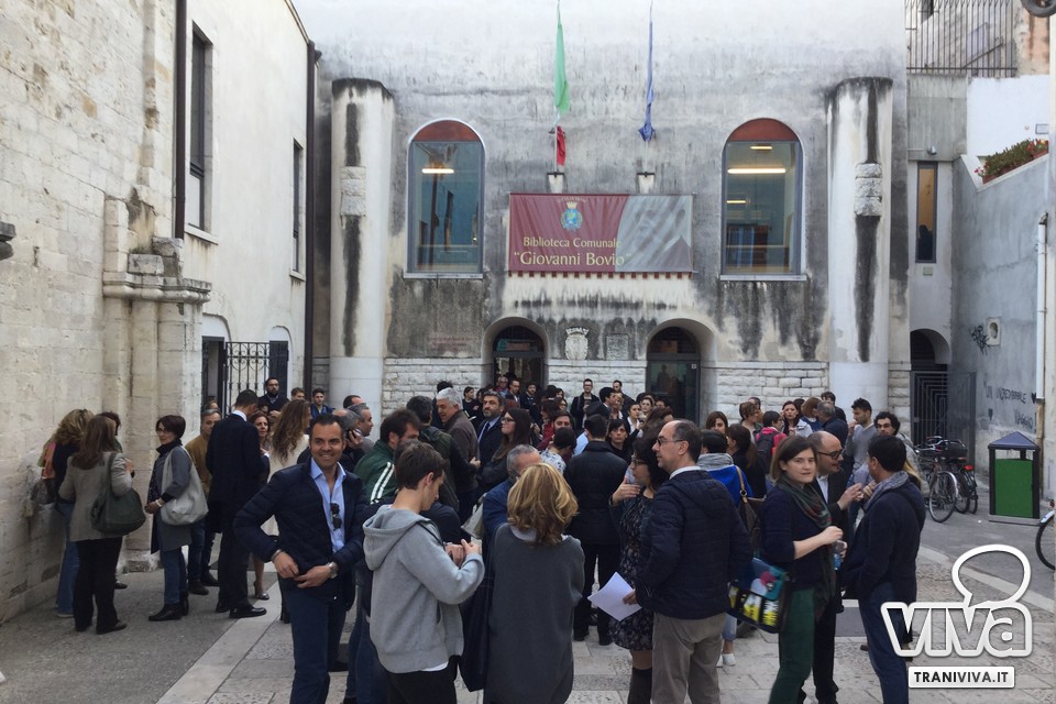 Nessun assente tra i candidati sindaco nella Giornata Internazionale del Libro, trasformatasi a Trani nel 145esimo compleanno della Biblioteca Comunale "Giovanni Bovio", nonché del giorno del soccorso a quest'ente ormai destinato alla chiusura definitiva dei servizi a partire dal prossimo Primo Maggio. Dopo un breve tour guidato, che ha mostrato al gruppo da cui uscirà il futuro primo cittadino quanto complessa e professionale sia la gestione di un luogo in apparenza bello e semplice, la carovana dei presenti è giunta nella sala eventi principale, al secondo piano, per la tavola rotonda. Che in realtà si è trasformata in un primo confronto pubblico tra i sei e poco ha avuto del dibattito, visto che poco o nullo è stato il tempo dedicato ai tanti cittadini accorsi.