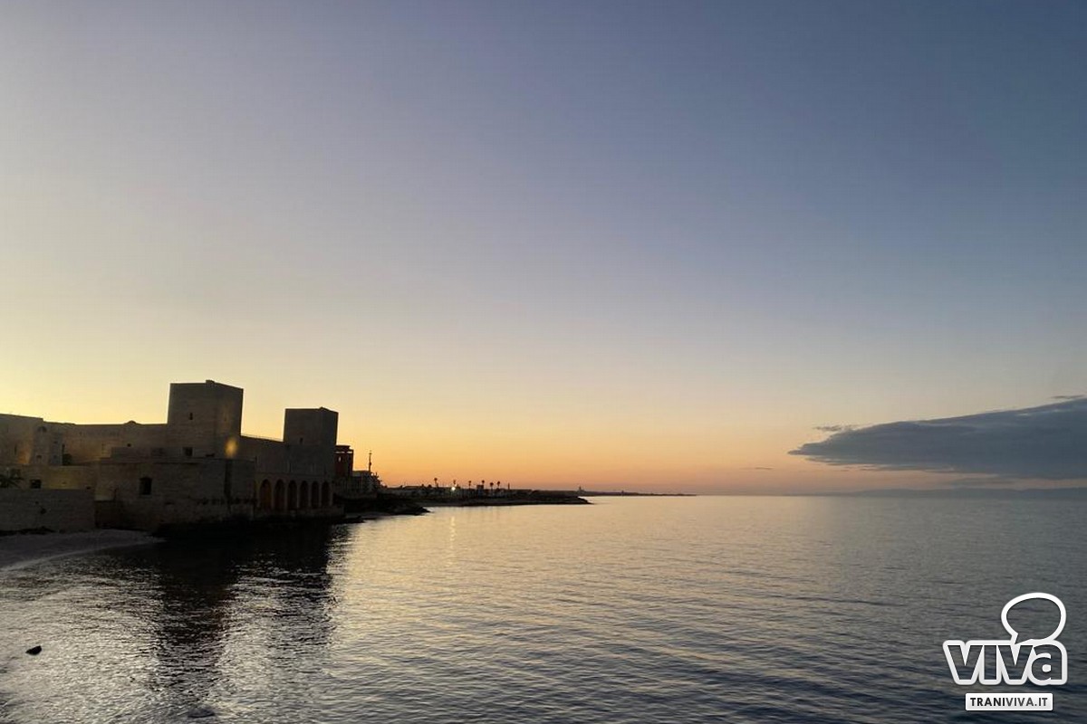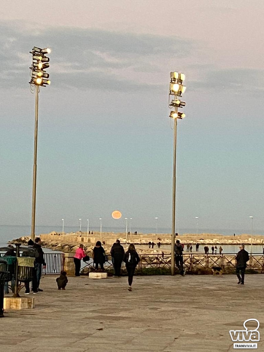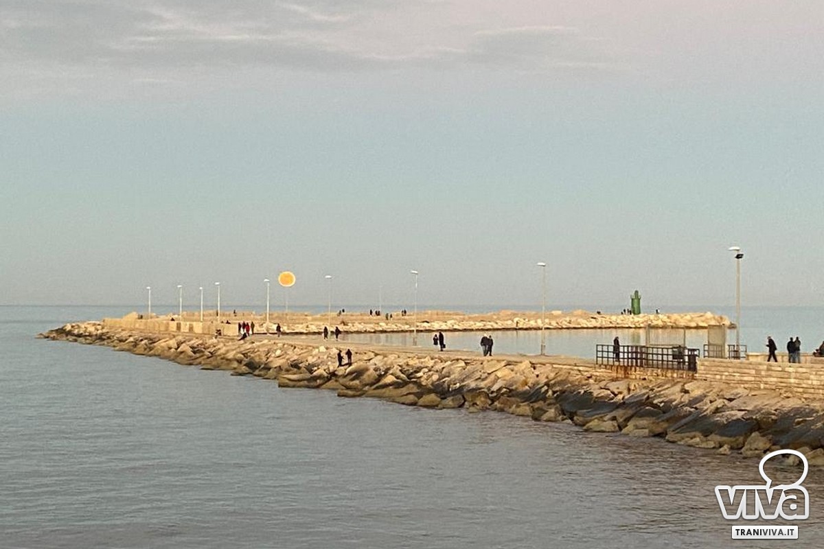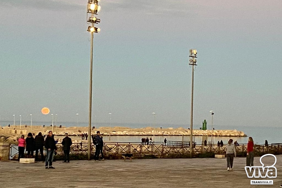 "La luna delle notti lunghe" ammalia nel cielo del tramonto sul mare di Trani