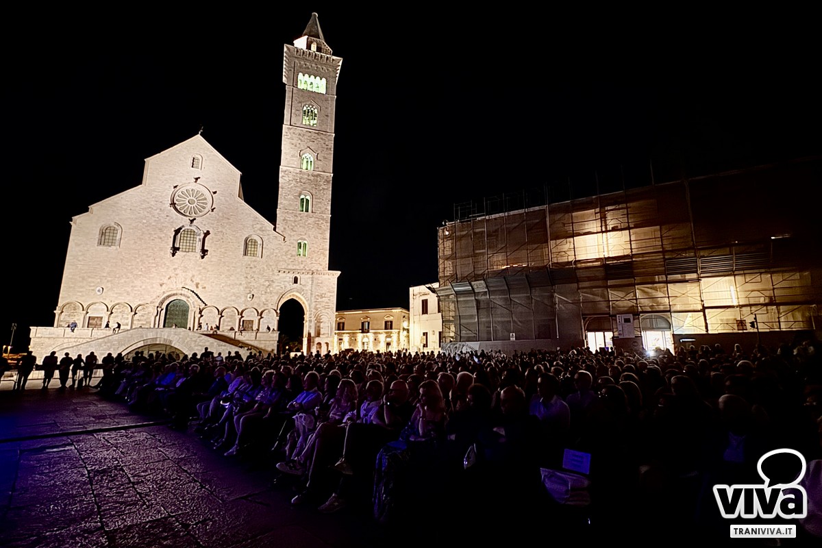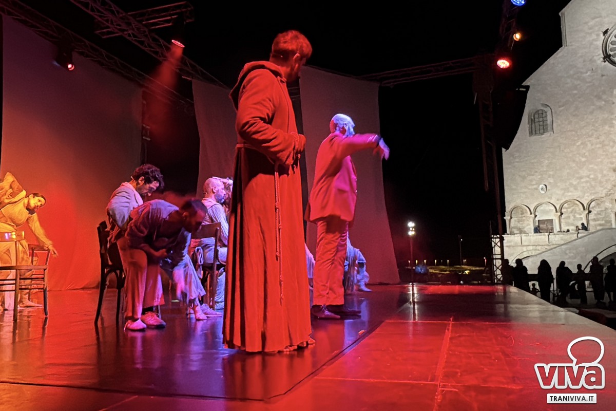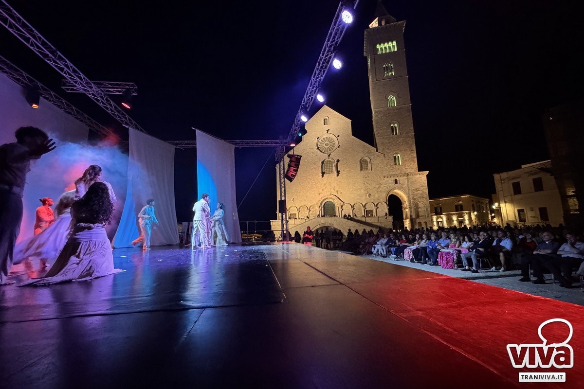 C'è stato un momento, nella serata di domenica 24 agosto, in cui il tempo a Trani sembrava essersi sospeso. La brezza marina ogni tanto portava con sé l'eco delle onde ed il profumo del mare, la maestosa Cattedrale romanica, illuminata, vegliava sulla sua piazza come una sentinella di pietra e di fede, e migliaia di persone, un corpo unico e silente, tenevano lo sguardo fisso su un palcoscenico carico di suggestione. Non era una serata qualunque, era la notte di "Actor Dei", organizzato dalla Fondazione SECA, un evento atteso che prometteva di intrecciare arte, memoria e spiritualità in un'unica, grande emozione collettiva. L'attesa era palpabile, l'energia densa. E per un intero atto, la magia non solo ha mantenuto le sue promesse, ma le ha superate, prima che il cielo, forse sopraffatto da tanta bellezza, decidesse di reclamare la scena.