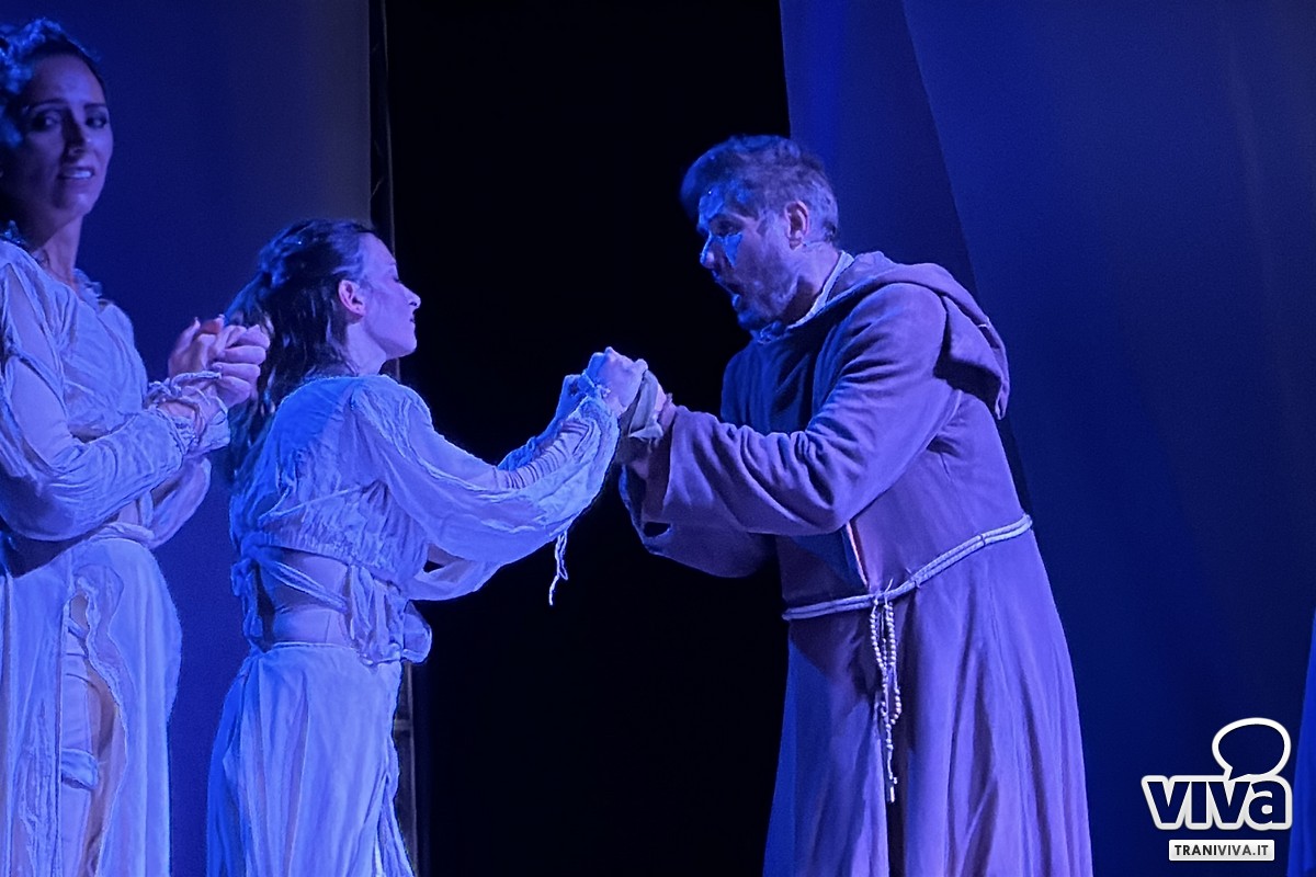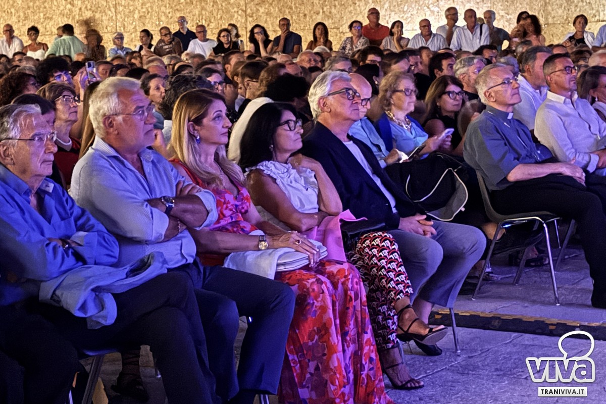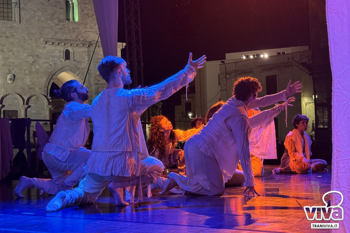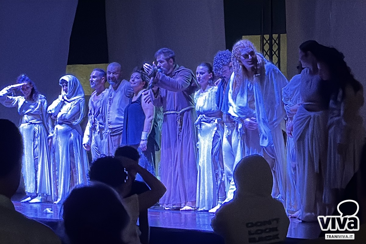 C'è stato un momento, nella serata di domenica 24 agosto, in cui il tempo a Trani sembrava essersi sospeso. La brezza marina ogni tanto portava con sé l'eco delle onde ed il profumo del mare, la maestosa Cattedrale romanica, illuminata, vegliava sulla sua piazza come una sentinella di pietra e di fede, e migliaia di persone, un corpo unico e silente, tenevano lo sguardo fisso su un palcoscenico carico di suggestione. Non era una serata qualunque, era la notte di "Actor Dei", organizzato dalla Fondazione SECA, un evento atteso che prometteva di intrecciare arte, memoria e spiritualità in un'unica, grande emozione collettiva. L'attesa era palpabile, l'energia densa. E per un intero atto, la magia non solo ha mantenuto le sue promesse, ma le ha superate, prima che il cielo, forse sopraffatto da tanta bellezza, decidesse di reclamare la scena.