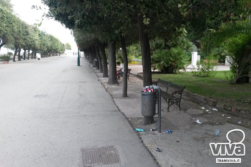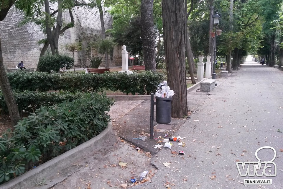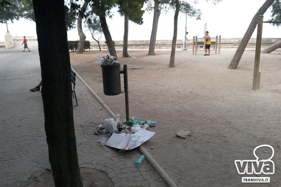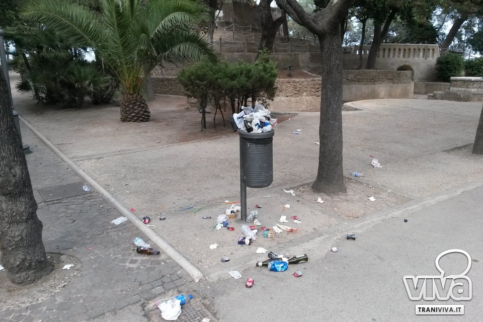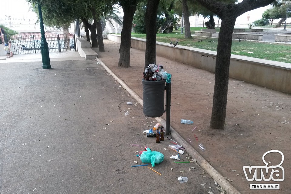 Festa di San Nicola significa per molti baldoria, bagordi e confusione. Da qualche tempo, sta prendendo piede la brutta abitudine di mangiare in villa. Pizza e birra la sera, ma a pranzo (soprattutto nei giorni di Pasquetta e I maggio) si sono viste anche paste a forno e altre portate da festa. Ecco che per San Nicola, anche per cercare un po' di refrigerio dall'afa, in molti hanno pensato bene di recarsi in villa per vedere i fuochi, accompagnando l'attesa con pizza, birra e Coca Cola. Nessuno ha portato via i rifiuti, decidendo di smaltirli nei bidoncini della carta, troppo piccoli e pieni per contenerli tutti.