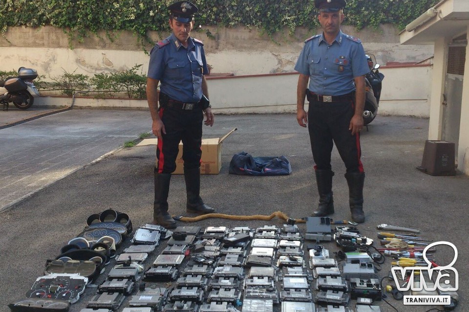 I militari, notato un casolare in stato di abbandono in contrada Punta Lavigna, hanno deciso di ispezionarlo, anche perché al loro arrivo, un individuo, poi riconosciuto in un sorvegliato speciale 34enne del luogo, si era dato a precipitosa fuga a bordo di un'Audi sw, nonostante l'alt intimatogli. Nel casolare gli operanti hanno trovato il 42enne che stava armeggiando con delle parti meccaniche di autovetture e, in una stanza attigua, sono state rinvenute 61 centraline elettroniche, verosimilmente appartenenti ad autovetture di svariate marche, rubate, nonché numerosi attrezzi da scasso, il tutto sottoposto a sequestro. L'uomo è stato quindi tratto in arresto e, su disposizione della Procura della Repubblica di Trani, sottoposto agli arresti domiciliari.