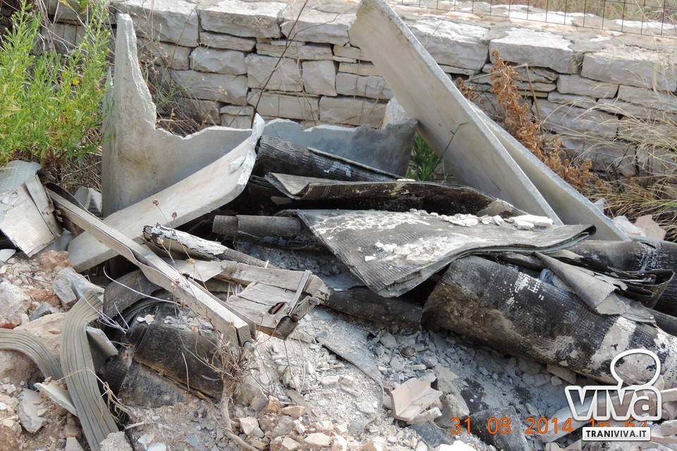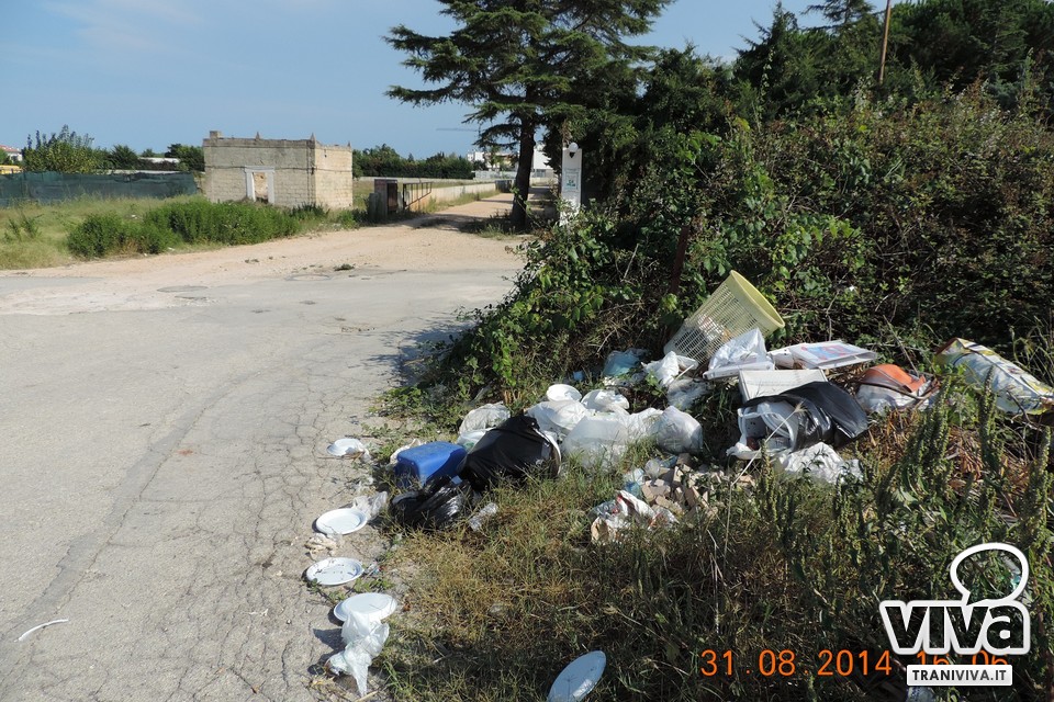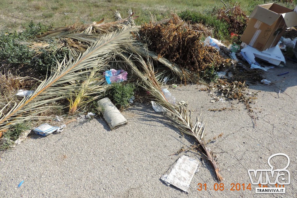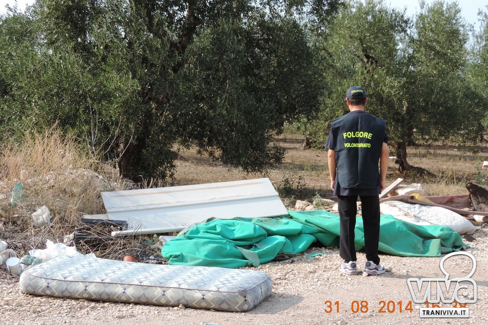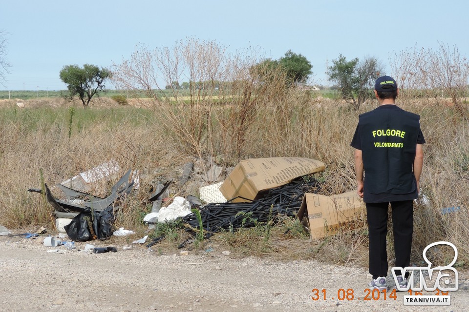 A pochi giorni dalla segnalazione della discarica a cielo aperto su via Vecchia Trani-Bisceglie, questo è in parte il resoconto del servizio di monitoraggio ambientale effettuato domenica 31 agosto nel territorio periferico e rurale di Trani dai volontari dell'Associazione Folgore di Trani, il tutto documentato con foto e video. «Ancora una volta l'Associazione Folgore - attraverso il suo Presidente, Nunzio Di Lauro - chiede all'Amministrazione comunale di intervenire con sollecitudine per far rimuovere i rifiuti e l'amianto da questi siti e dagli altri siti già comunicati a Palazzo di Città con segnalazioni protocollate al Comune in data 25 e 28 agosto 2014.