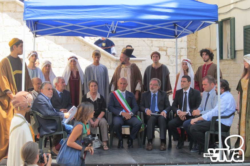 Ed in un'atmosfera rinascimentale si è sviluppata la giornata inaugurale di «Lech Lechà». Trombettieri e tamburieri, rabbini e maestranze in costume ebraico e con i gonfaloni di alcune delle 10 città che hanno aderito al progetto sono partite dalla ex Sinagoga di Scolagrande (Sant'Anna) e, percorrendo via La Giudea, sono arrivate in piazza Scolanova dove era presente il palco con le autorità istituzionali ed ebraiche. Assente Francesco Ventola, a rappresentare la Regione c'era l'assessore Silvia Godelli, mentre per Trani c'erano il sindaco, Gigi Riserbato e l'assessore alla cultura, Salvatore Nardò.