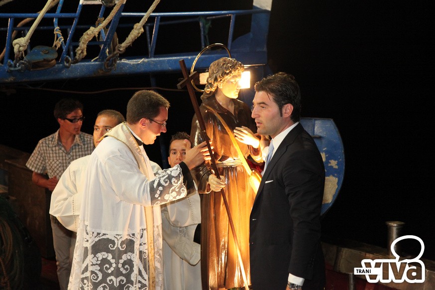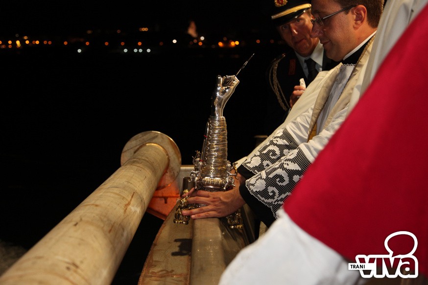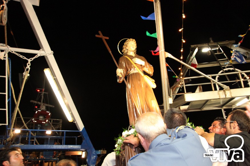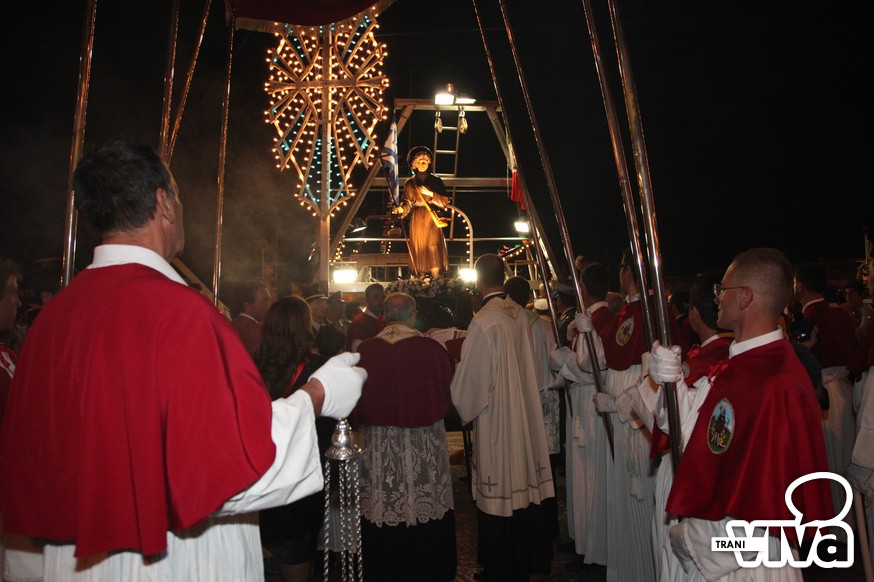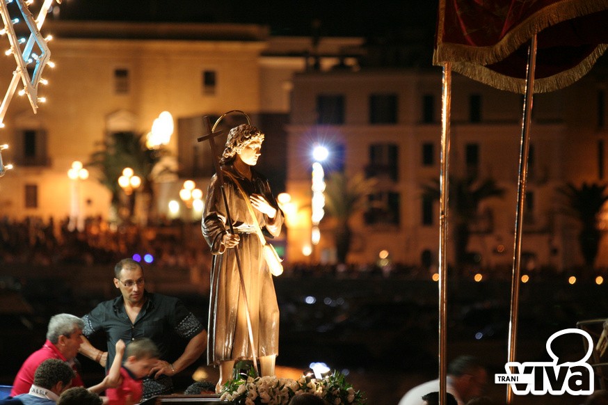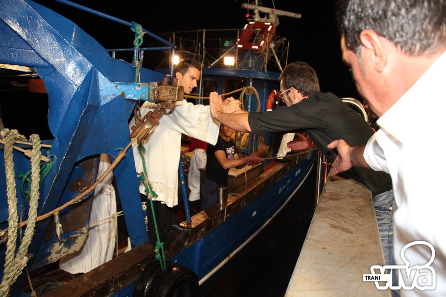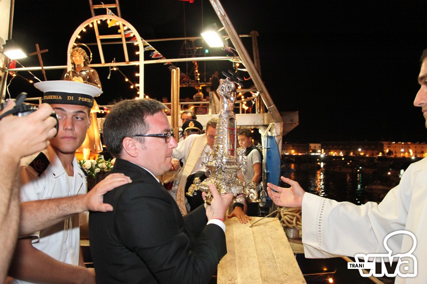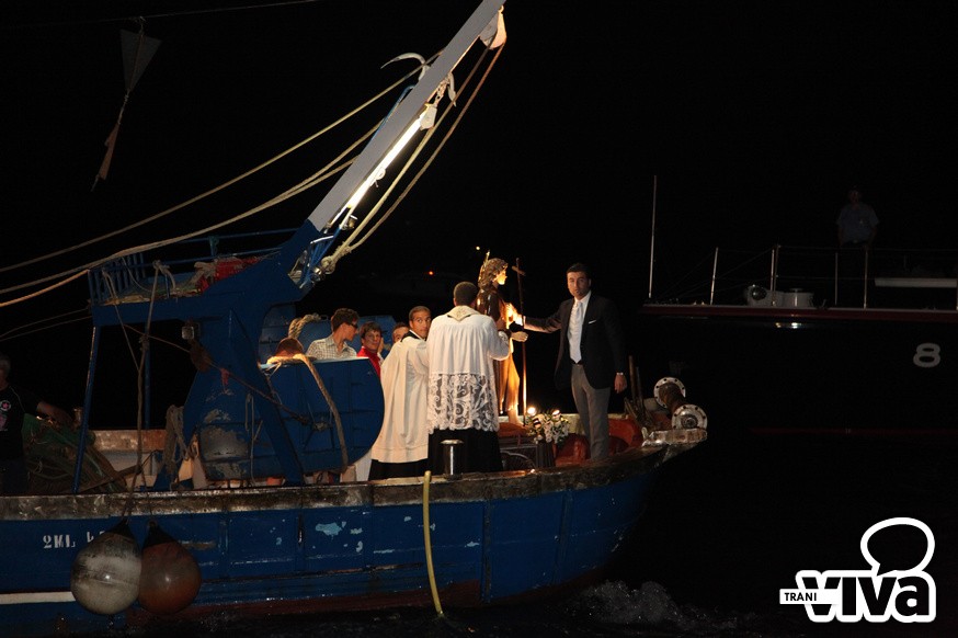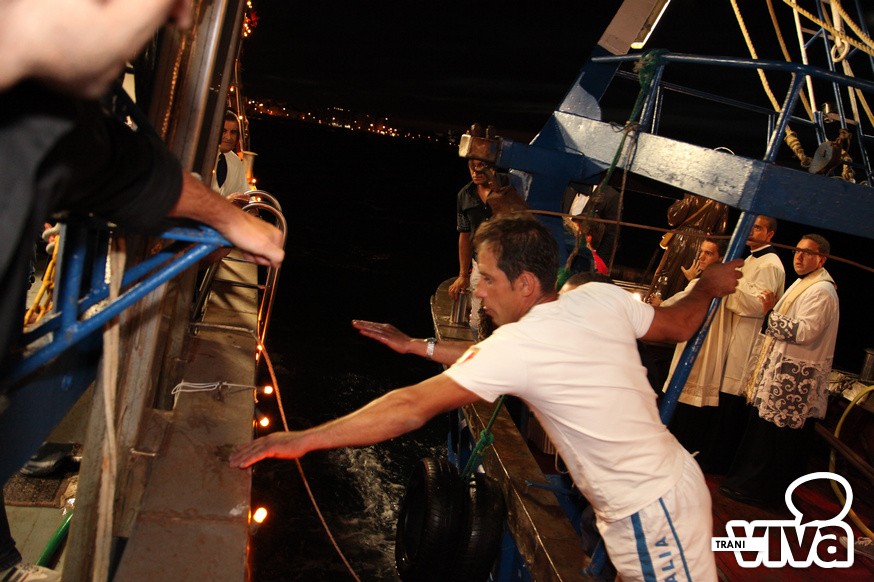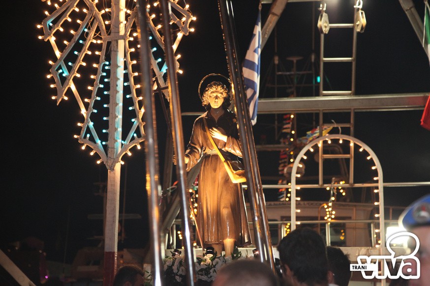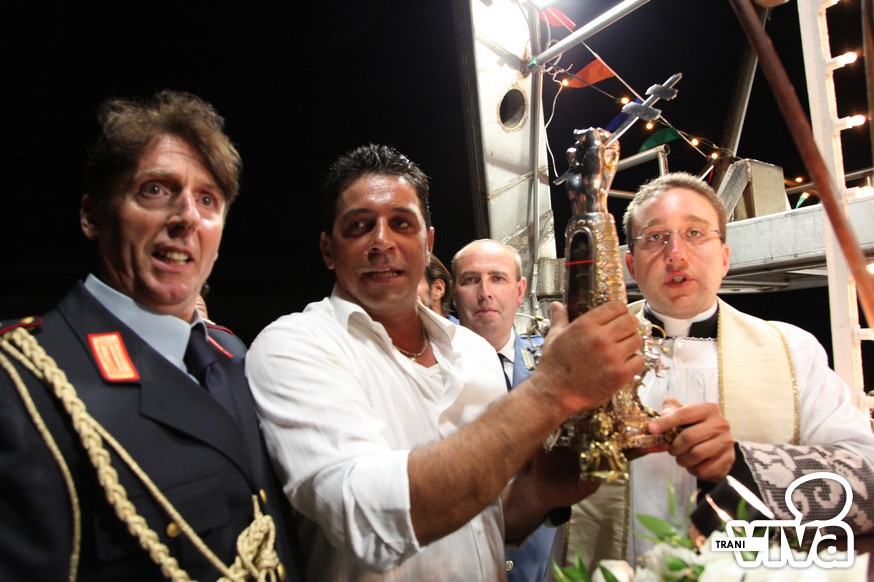 Il porto di Trani ha accolto ieri sera la statua di San Nicola Pellegrino, imbarcata intorno alle 21.20 da Capo Colonna sul motopesca Carmela e Nicoletta. L'arrivo del santo è stato salutato dagli applausi della gente e dai giochi pirotecnici che hanno illuminato tutto l'ingresso del porto, dal fortino al molo di Santa Lucia. TraniViva ha seguito lo sbarco a bordo del peschereccio.
