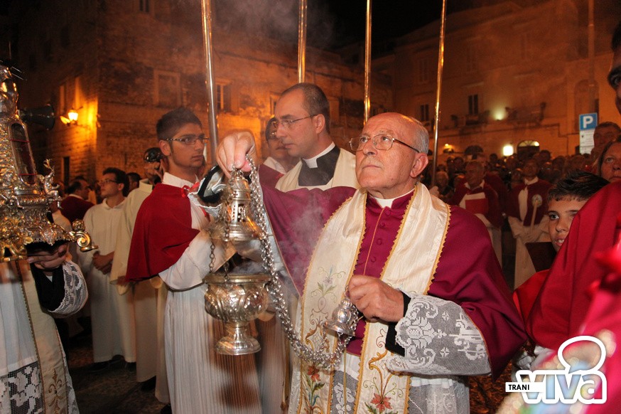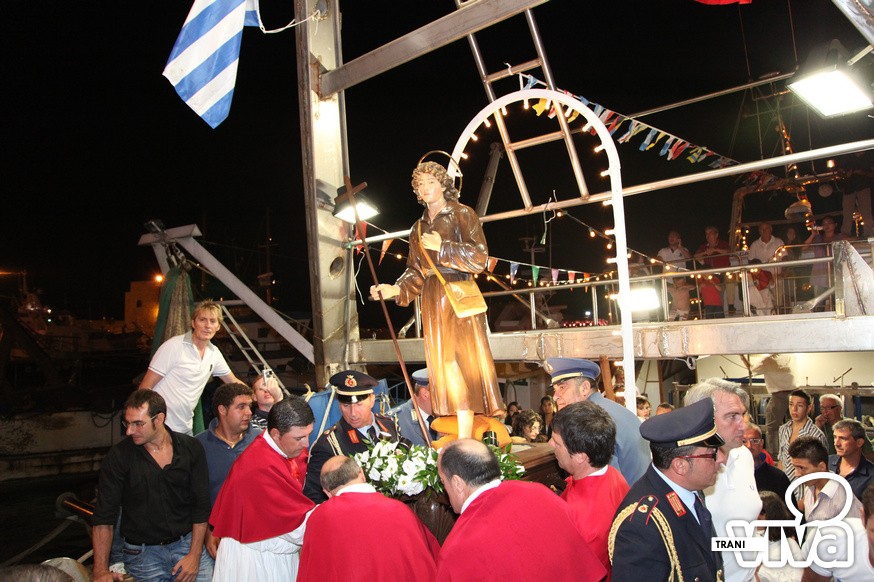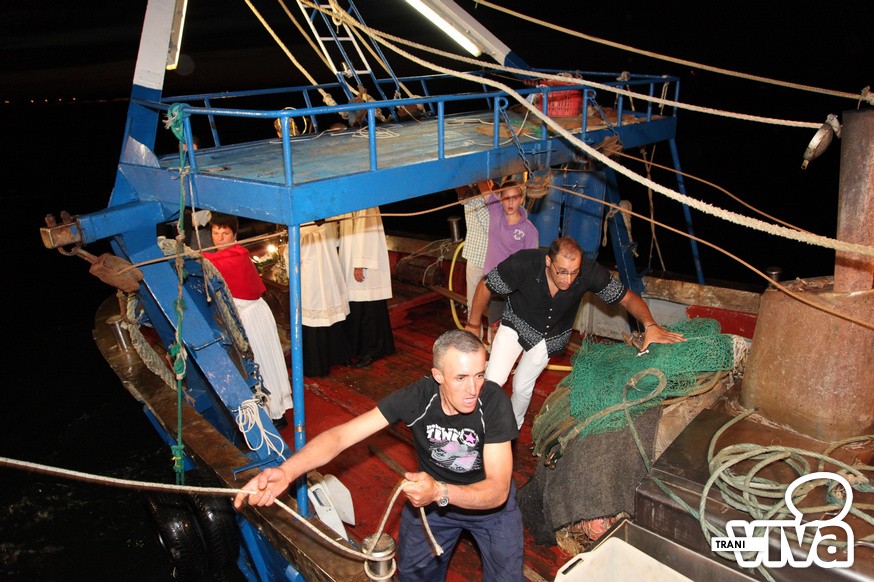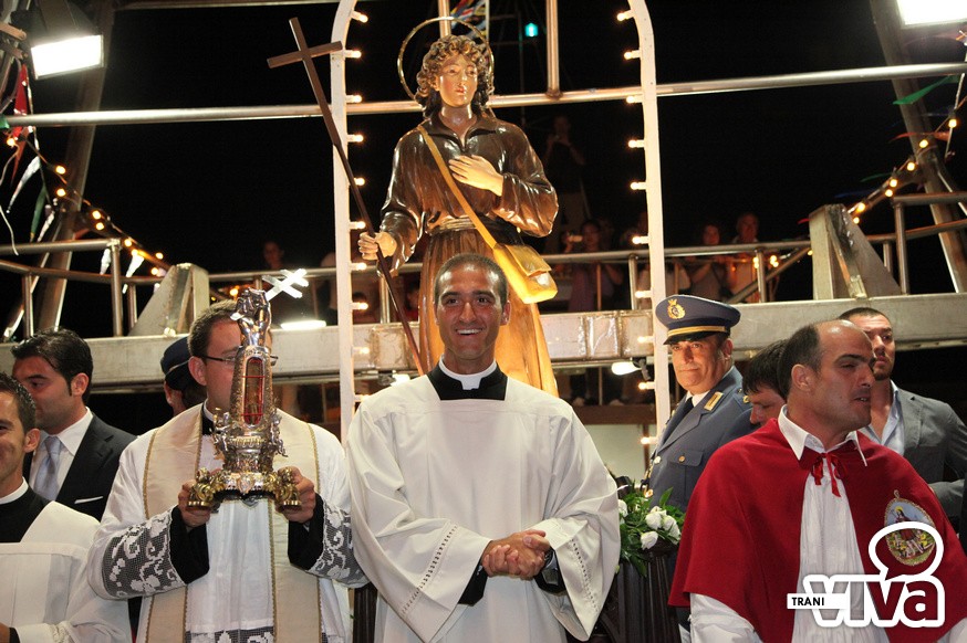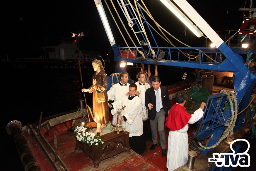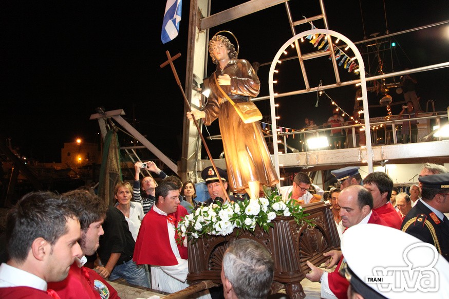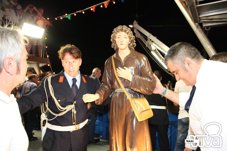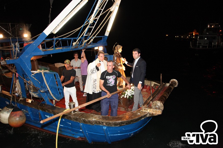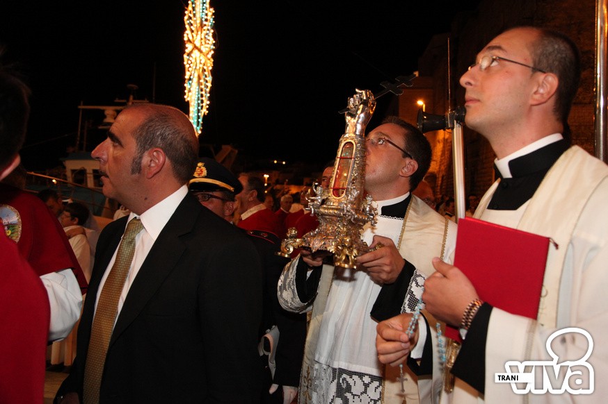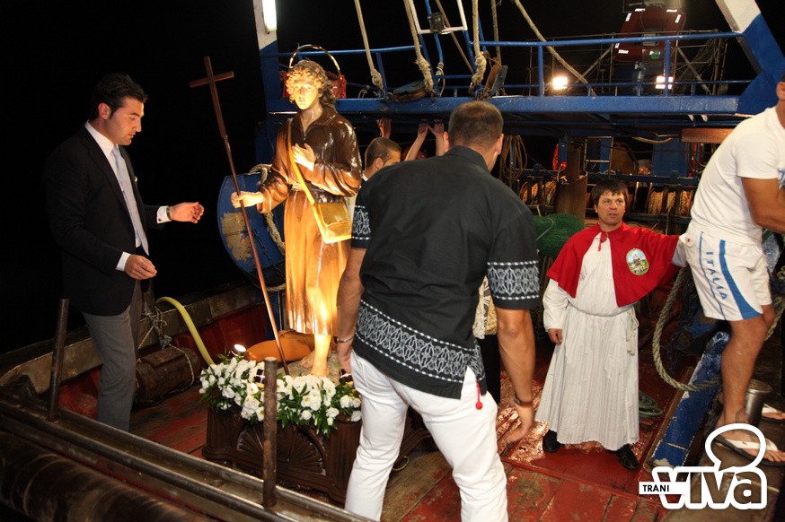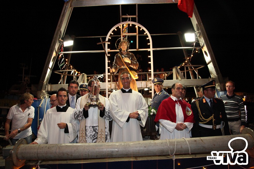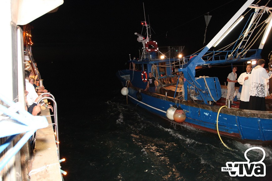 Il porto di Trani ha accolto ieri sera la statua di San Nicola Pellegrino, imbarcata intorno alle 21.20 da Capo Colonna sul motopesca Carmela e Nicoletta. L'arrivo del santo è stato salutato dagli applausi della gente e dai giochi pirotecnici che hanno illuminato tutto l'ingresso del porto, dal fortino al molo di Santa Lucia. TraniViva ha seguito lo sbarco a bordo del peschereccio.