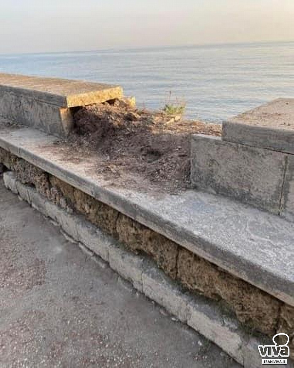 Non paghi di aver distrutto quelle enormi anfore che disegnano il profilo della nostra città, adesso qualcuno ha pensato bene di prendersela addirittura con una porzione di parapetto della Villa Comunale, vittima sacrificale di violenza, rabbia, frustrazione, o solo magari di una noia da riempire dimostrando un potere finalizzato alla distruzione.