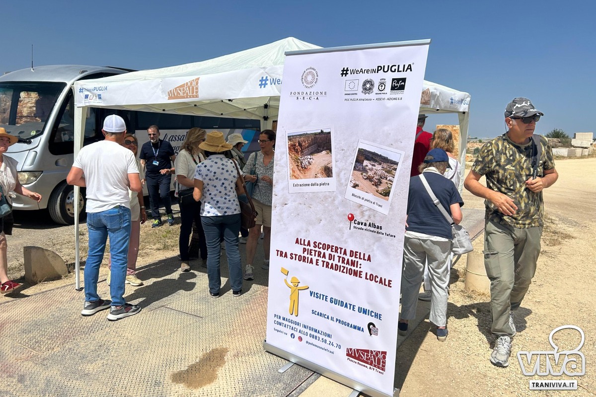 Durante le visite guidate, i partecipanti si sono ritrovati immersi in un mondo fatto di pietra, sudore e memoria, tra luoghi millenari in continua trasformazione, dove i paesaggi verdi della campagna pugliese sono interrotti da anfiteatri di pietra che svelano il cuore profondo e autentico di questa terra. Tutto ciò ha rappresentato un viaggio affascinante nella storia del pregiato marmo tranese, dall'antichità ai giorni nostri, raccontando soprattutto il duro sacrificio umano dei cavamonti che, con fatica e dedizione, ne hanno reso possibile l'estrazione del pregiato materiale. Il sacrificio dei cavamonti si leggeva nelle mani segnate dal duro lavoro, nei volti scavati dal tempo: restano ancora oggi testimoni muti di una tradizione millenaria, forgiata nel sudore, nel silenzio e nell'orgoglio.