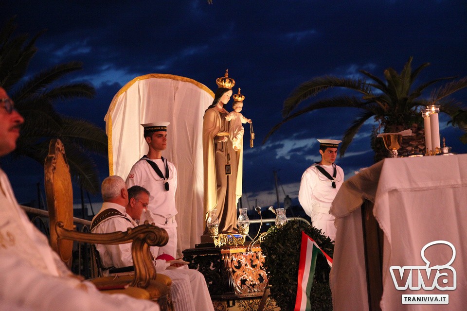 Sono iniziati ieri sera i festeggiamenti per la Madonna del Carmine con un gruppo di subacquei che, con le fiaccole, ha accompagnato l'immagine della Vergine mentre veniva imbarcata presso i pontili della Lega Navale su un'imbarcazione della Guardia Costiera. La tradizione, quindi, anche quest'anno si è rinnovata con i fedeli che sono accorsi numerosi per partecipare ad uno spettacolo unico. La Madonna, scortata da numerosi altri natanti, ha raggiunto poi l'avamporto dove, in suffragio ai caduti del mare, è stata benedetta una corona di fiori affidata poi alle onde. Dal molo San Marco, punto di sbarco della statua, la Madonna è stata poi portata in processione fino alla chiesa del Carmine in piazza Tiepolo. Spettacolo unico, dunque, conclusosi con i fuochi d'artificio. I festeggiamenti proseguiranno fino a mercoledì, giorno in cui la Madonna del Carmine sarà portata in processione attraverso le vie principali della città.