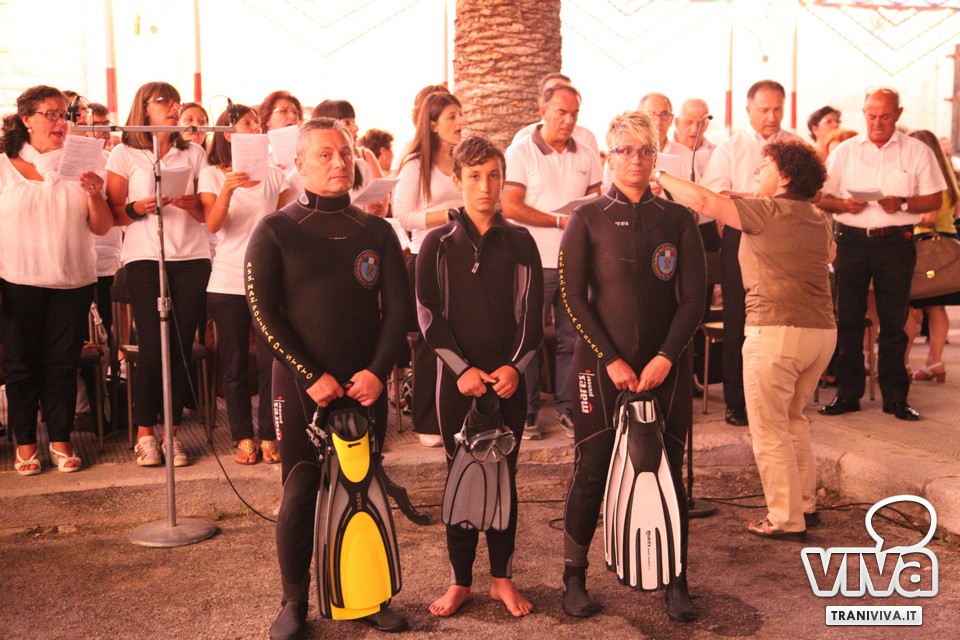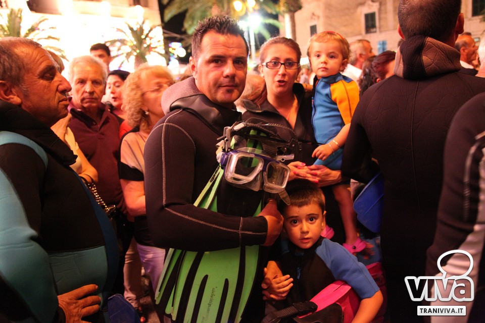 La statua della Vergine accompagnata dai sub. Tanti i fedeli accorsi