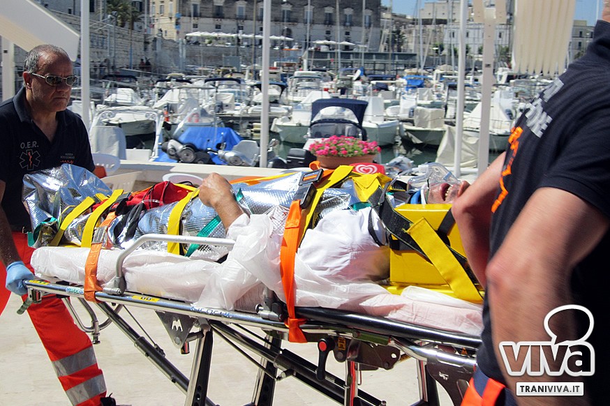 Malori e fiamme sui pontili della Lega navale di Trani: ma è solo una simulazione. In mattinata, sui pontili del circolo tranese, si è svolta la semestrale esercitazione organizzata e coordinata dalla Capitaneria di porto che ha visto la partecipazione, oltre che di una motovedetta e del personale della Guardia costiera, degli Operatori emergenza radio, dei Carabinieri e dei Vigili del fuoco.