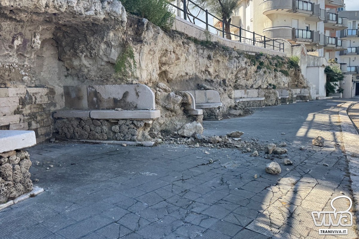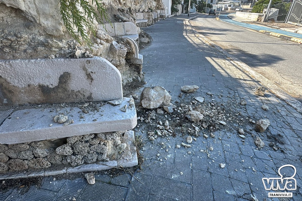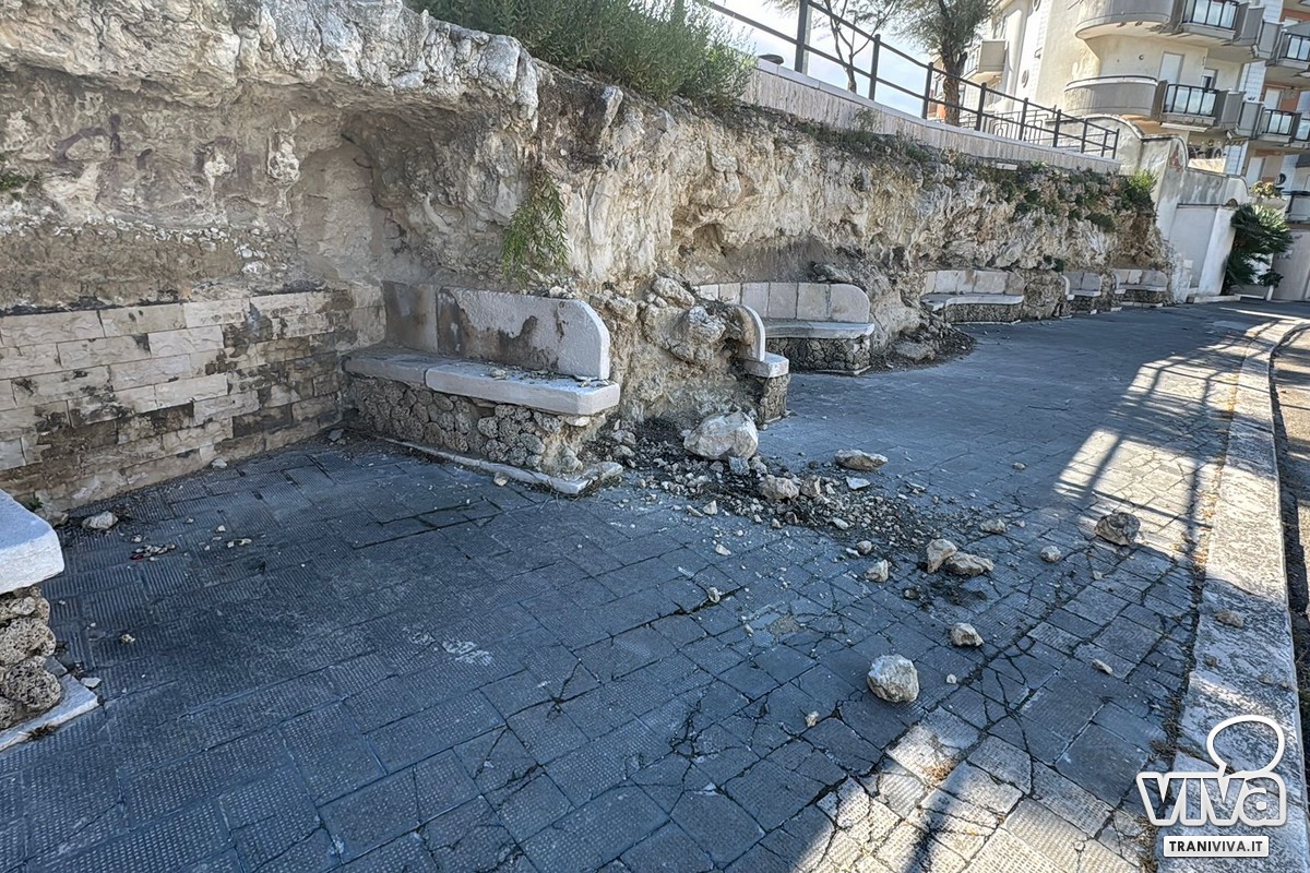 A seguito delle forti piogge e delle raffiche di vento che nelle ultime ore si sono abbattute sulla città di Trani, si è verificato il cedimento di una porzione del muraglione che costeggia il belvedere di via Venezia, sul lato lungomare.