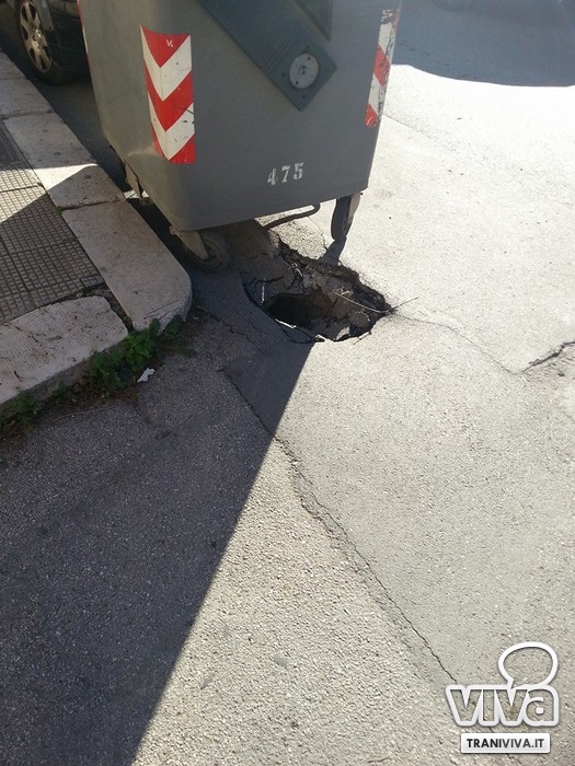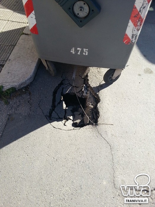 Le segnalazioni ci giungono dal gruppo Facebook Tranispia dove due utenti hanno fotografato i casi in Via Istria e in Via De Robertis. In entrambi i casi ad essere messa in gioco è la sicurezza dei cittadini. Nella prima si assiste ad un incredibile cedimento dell'asfalto che ha creato una vera e proprie voragini sul manto stradale. Nella seconda fotografia, un tombino pericolante e a rischio di cedimento. Le due aree ancora non sono state poste in sicurezza e pertanto si aspettano il tempestivo intervento della polizia.