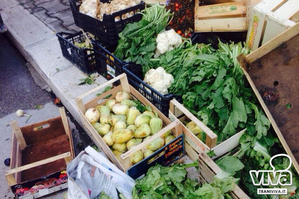 Ogni martedì, al termine della giornata lavorativa, i venditori ambulanti smontano le proprie bancarelle e tornano a casa. Del mercato ortofrutticolo, situato nella zona nord di Trani, nei pressi del liceo scientifico, nella piazza Madre Teresa di Calcutta, non resta più nulla. Tutto splende, lo spazio circostante torna ad essere pulito esattamente come se non fosse stata svolta nessuna attività.