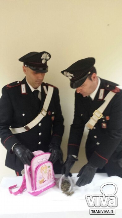 I Carabinieri della Stazione di Trani hanno arrestato un 21enne del luogo, già noto alle forze dell'Ordine, ritenuto responsabile di detenzione ai fini di spaccio di sostanze stupefacenti. Nel corso di un posto di controllo alla circolazione stradale finalizzato a reprimere le condotte di guida pericolosa i Carabinieri hanno fermato una Lancia Y con a bordo un giovane, la convivente e la figlia di appena 4 anni. Insospettitisi per l'atteggiamento riluttante e nervoso durante il controllo, i militari hanno effettuato una perquisizione trovando all'interno dello zaino della piccola, una busta contenente 50 grammi di marijuana pronta per essere spacciata. Tratto in arresto il giovane su disposizione della Procura della Repubblica di Trani, è stato collocato ai domiciliari.