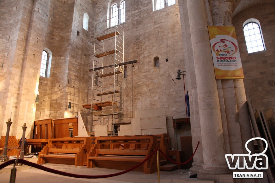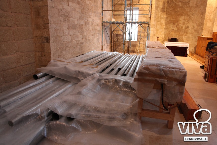 Da pochi giorni sono iniziati di smantellamento dell'organo sinfonico installato all'interno della Cattedrale di Trani. Lo strumento attuale, costruito dalla ditta dei fratelli Ruffati di Padova intorno agli anni '60, verrà sostituito da un organo realizzato con tecnologie più moderne e dotato di un sistema elettronico computerizzato. Lo strumento, che occupa l'intero transetto destro della Cattedrale, ha un sistema di trasmissione elettromeccanico che funziona per mezzo di relè. Il danneggiamento di numerosi meccanismi non consente allo strumento (che consta di 3 tastiere da 61 note, una pedaliera da 32 note e in tutto 48 registri di cui alcuni prolungati o derivati) di suonare correttamente.