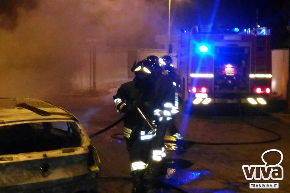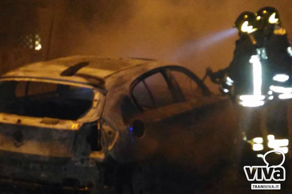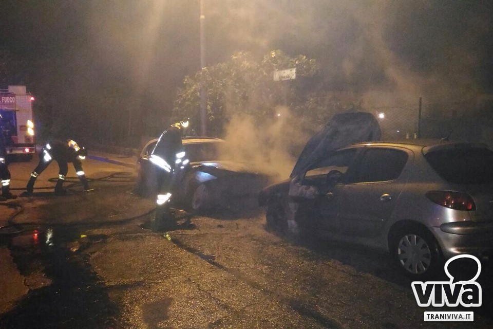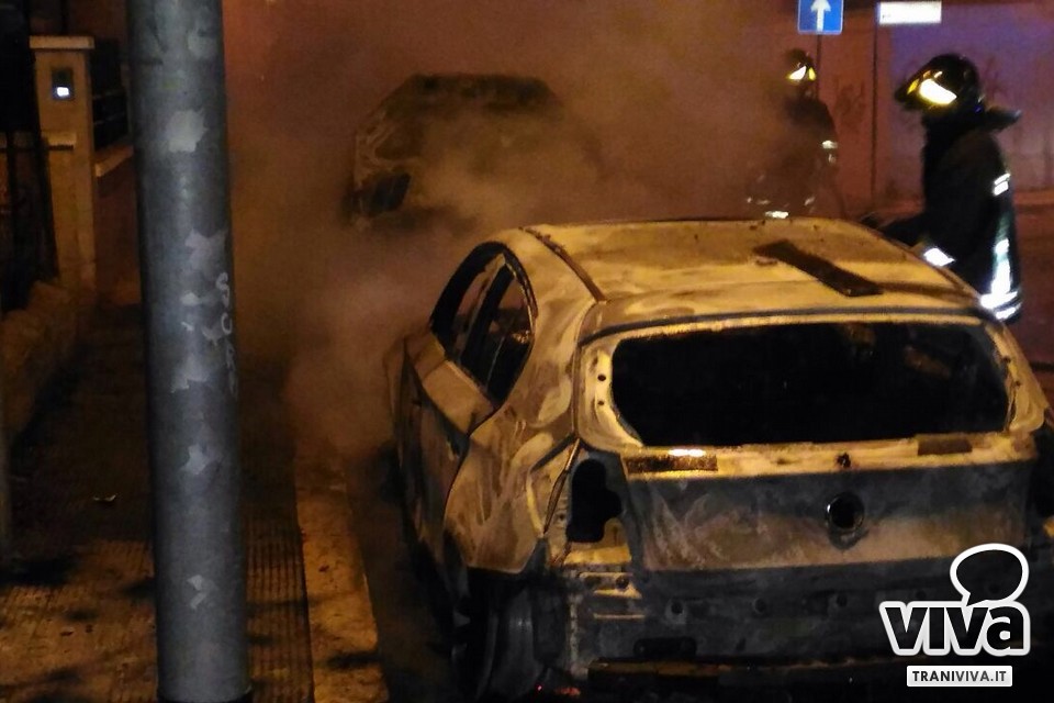 Ancora una notte di fuoco a Trani. In via Venezia, zona Colonna, due automobili hanno preso fuoco intorno alla mezzanotte. I residenti, allarmati dal cattivo odore e dal fumo nero che li stava circondando, hanno immediatamente chiamato i vigili del fuoco, intervenuti podo dopo. Non si sono salvate le auto che appaiono completamente distrutte. Restano ancora sconosciute le cause dell'incendio.