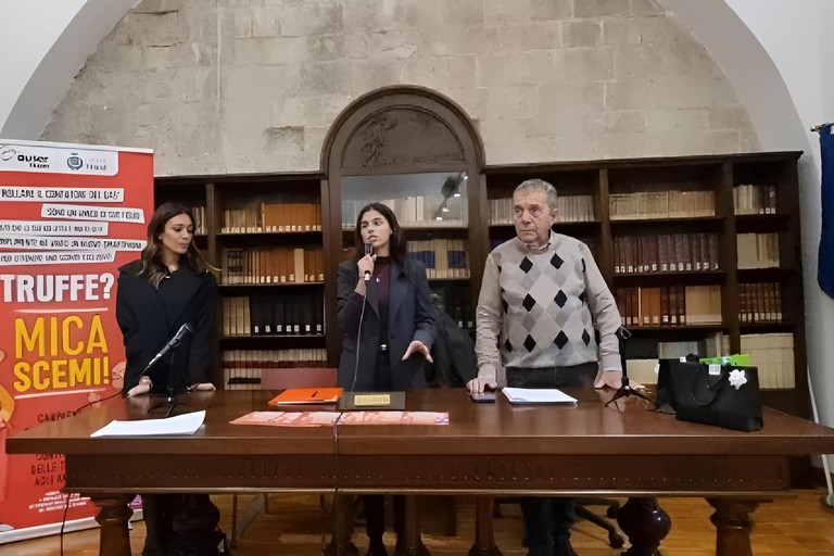 Si è tenuto lo scorso 27 novembre, presso la Sala Maffuccini della Biblioteca Comunale "Giovanni Bovio", l'appuntamento conclusivo di un intenso ciclo di incontri dedicati alla sicurezza: la premiazione del concorso di poesie "Non mi prendi nella rete" – MICA SCEMI. L'evento, che ha visto protagonisti i giovani studenti della città, rappresenta il culmine del progetto "Occhio alle Truffe – Mica Scemi", promosso dal Comune di Trani in convenzione con l'associazione Auser Trani e finanziato dal "Fondo unico Giustizia" del Ministero dell'Interno. L'iniziativa, giunta al suo secondo anno, si è posta l'obiettivo di prevenire e contrastare il preoccupante fenomeno delle truffe ai danni degli anziani, sperimentando con successo una formula di sensibilizzazione innovativa che ha coniugato formazione, intrattenimento e coinvolgimento civico.