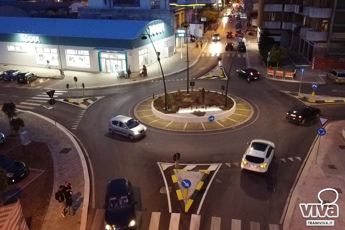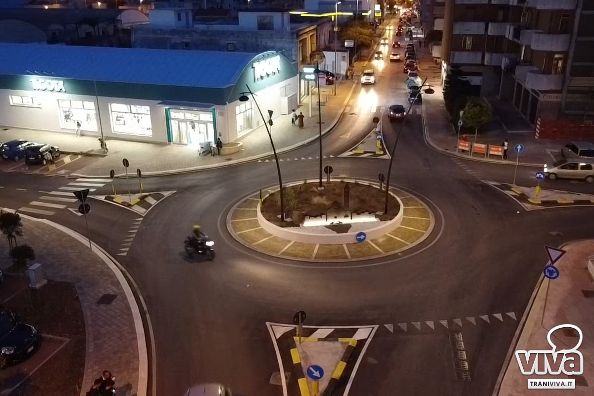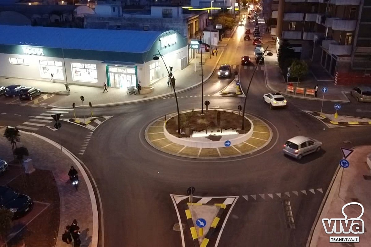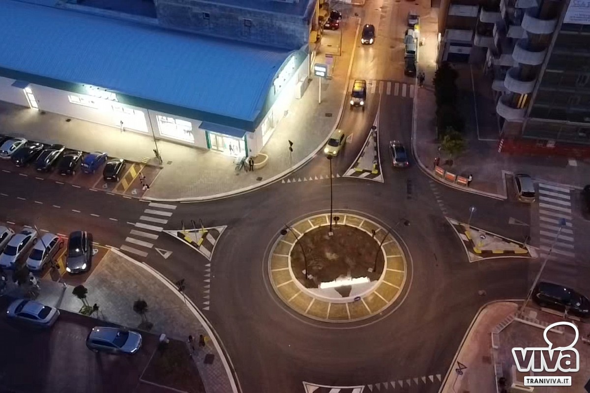 È entrata in funzione l'illuminazione con proiettori al led della nuova rotonda di via Barletta, che collega via Papa Giovanni a via Finanzieri, a cura di Amet e Neri SpA.