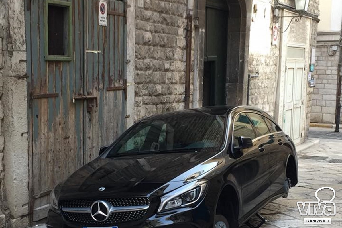 Siamo al quinto caso di furto di pneumatici nell'arco di circa due settimane. Questa volta la malcapitata vettura era parcheggiata in via Cambio, nel centro storico di Trani. Il modus operandi è sempre lo stesso: il furto delle ruote avviene tramite il sussidio di blocchi di pietra, segno che ad agire è probabilmente la stessa banda di malviventi. Si tratta sicuramente di professionisti nel settore per la velocità con cui compiono il furto, senza essere mai "beccati" da qualche passante o residente.