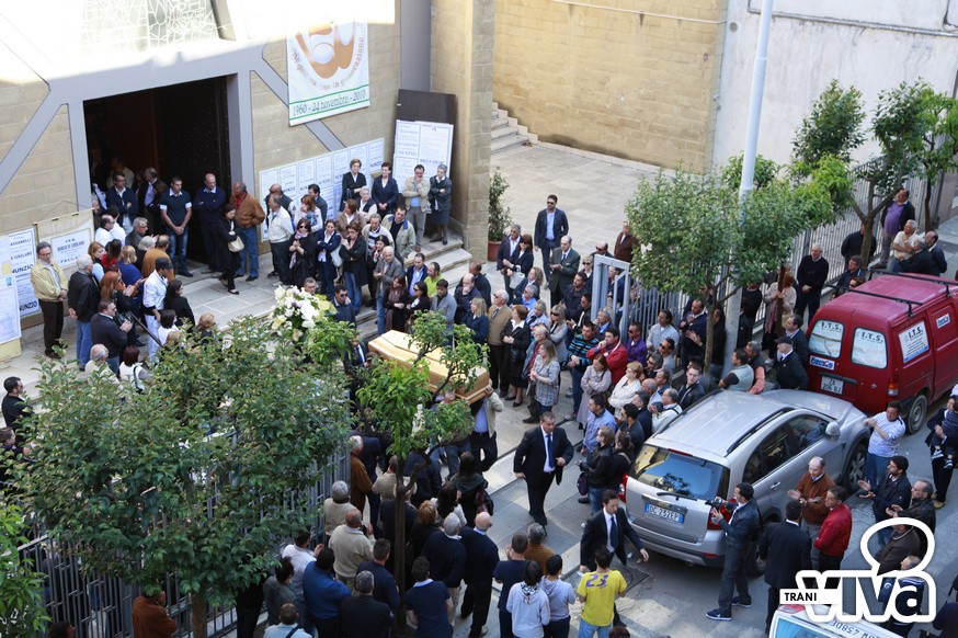 Composto dolore per i funerali del costruttore tranese. Parenti, tanti amici e cittadini hanno gremito la chiesa di San Giuseppe